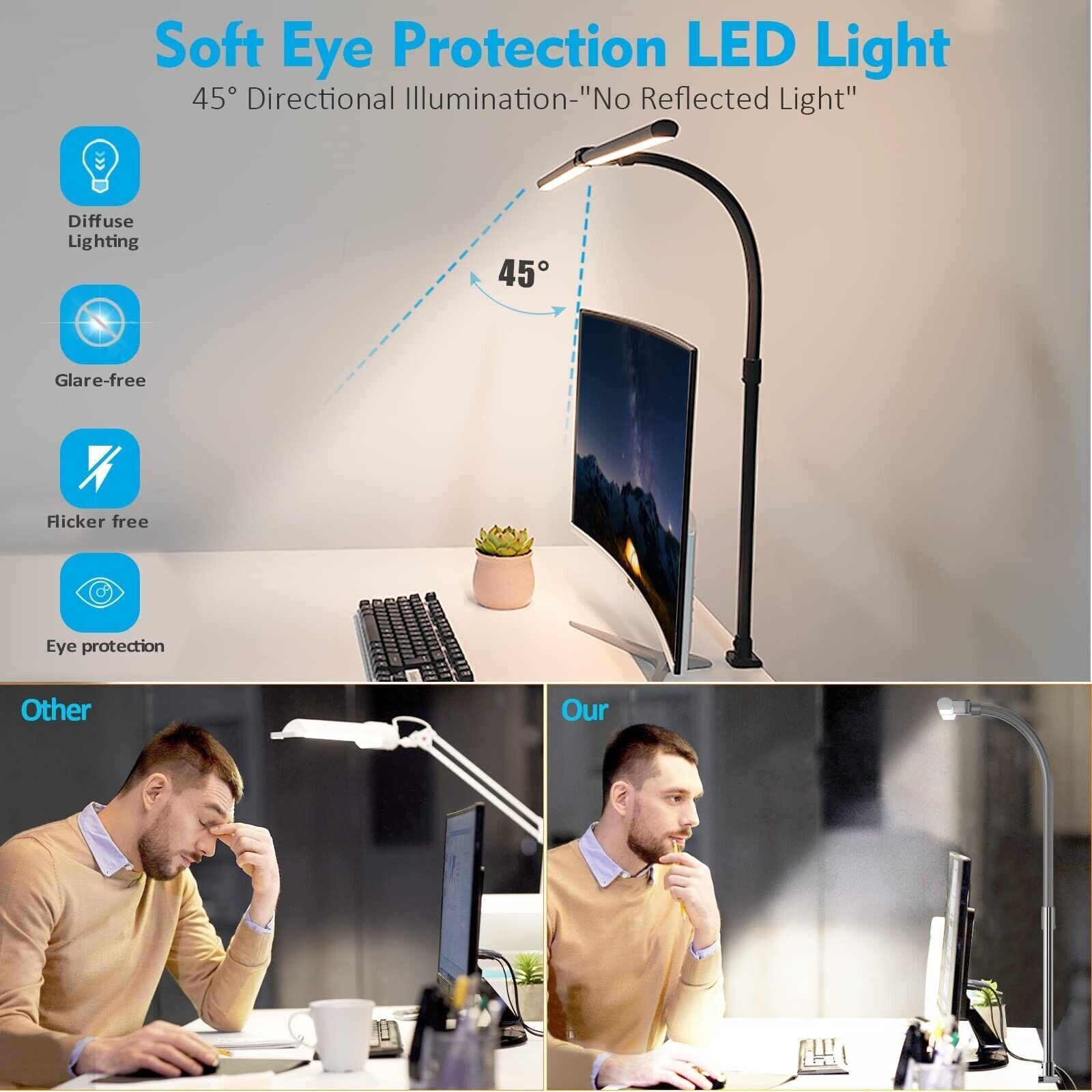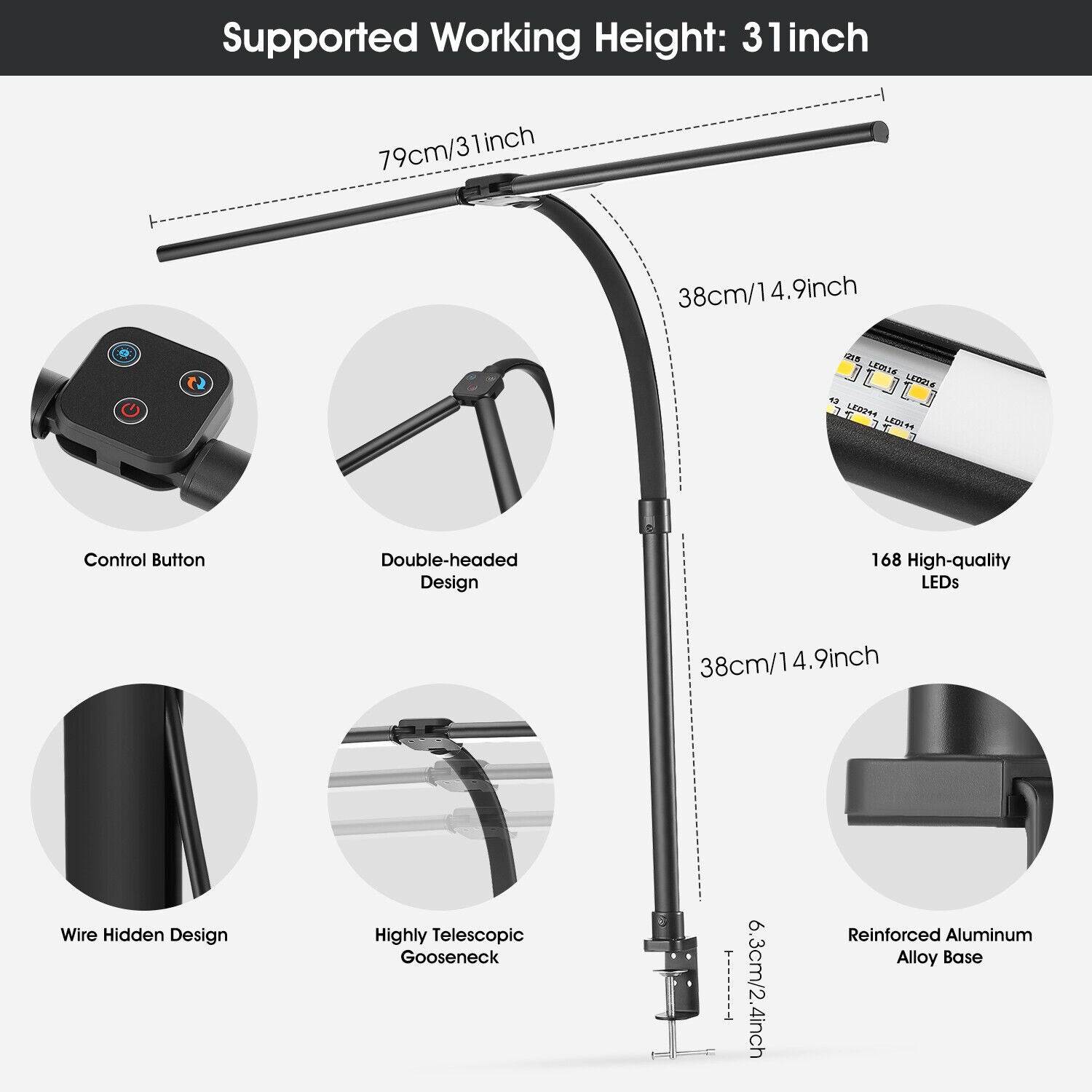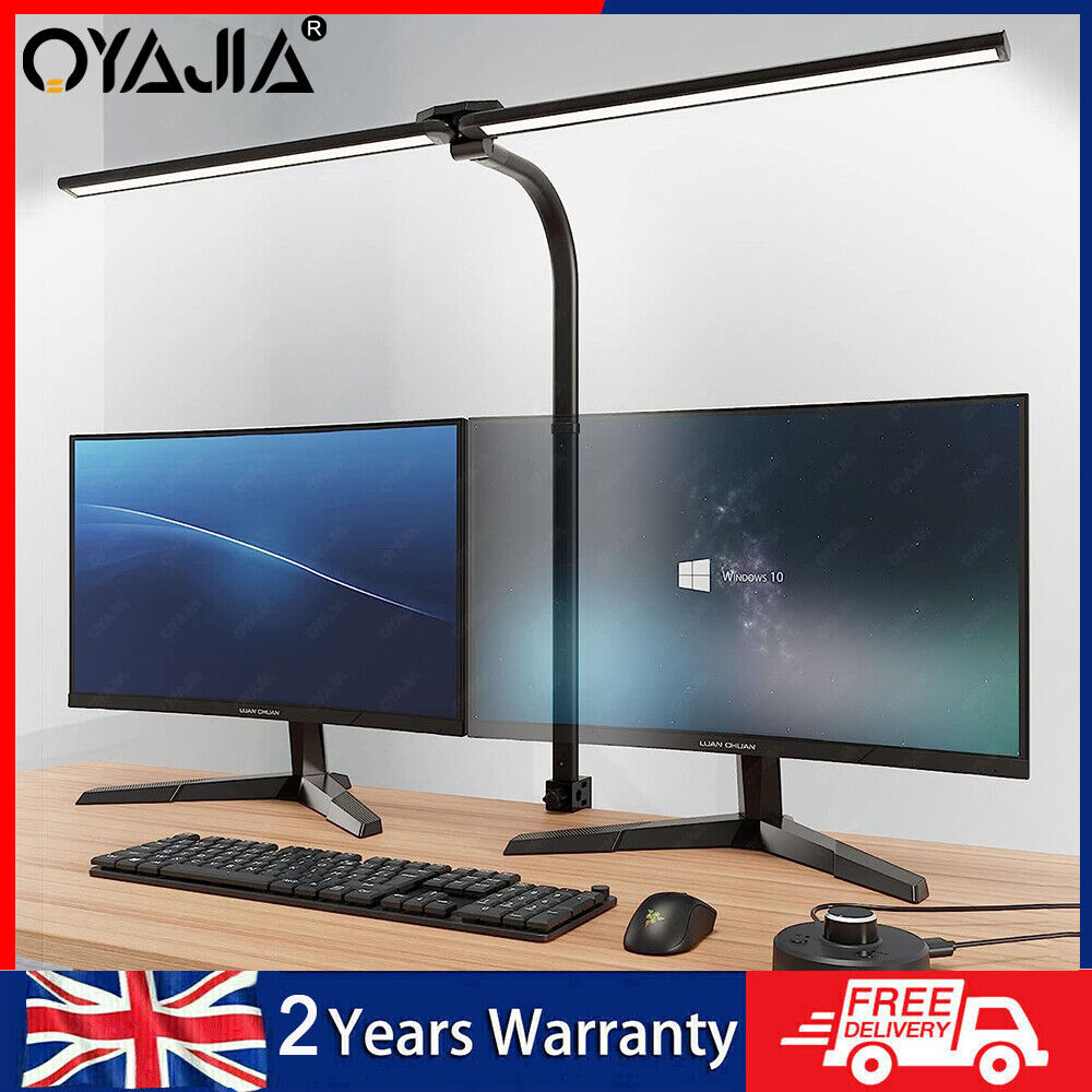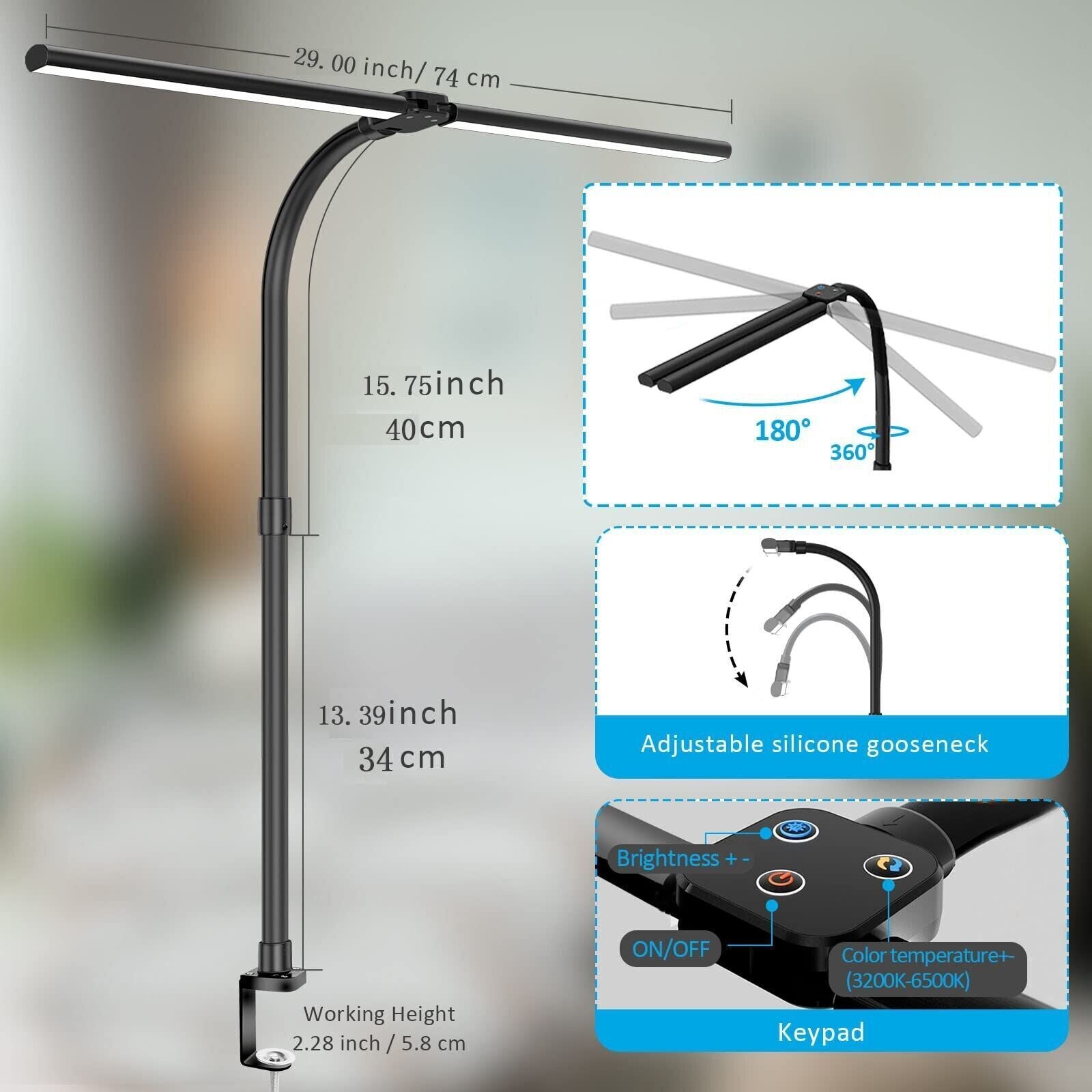 LED Double Head Desk Lamp 24W Foldable Reading Desk Light Dimmable Eye Caring