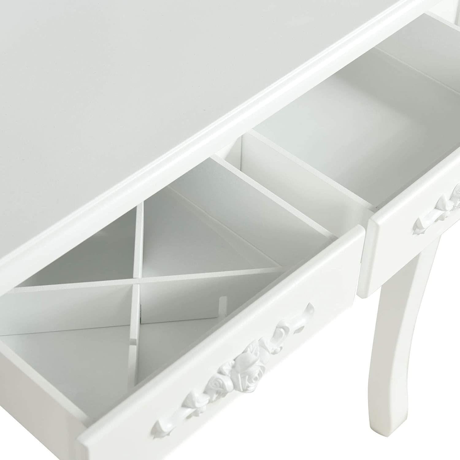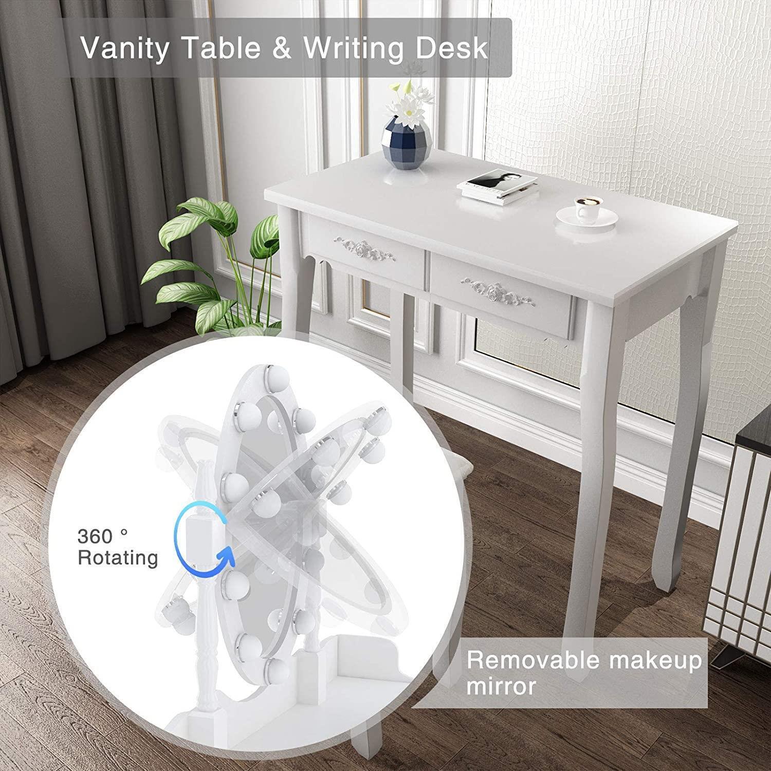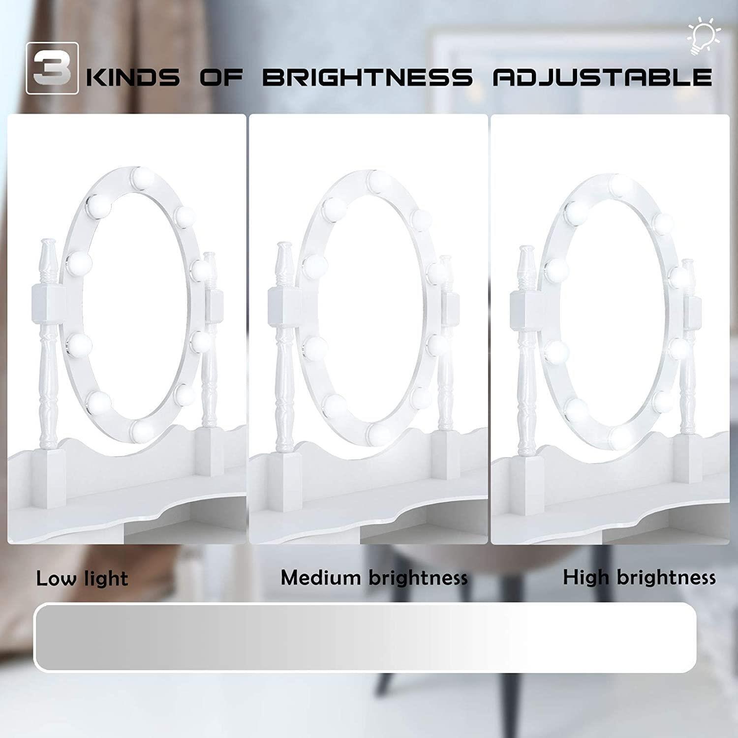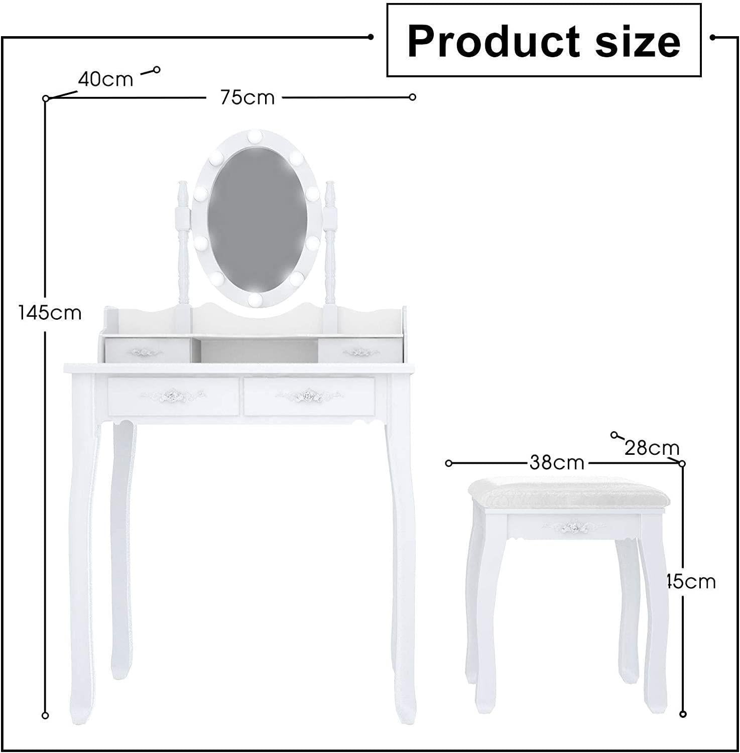LED Dressing Table Set White Vanity Makeup Table 4 Drawers Adjustable Mirror