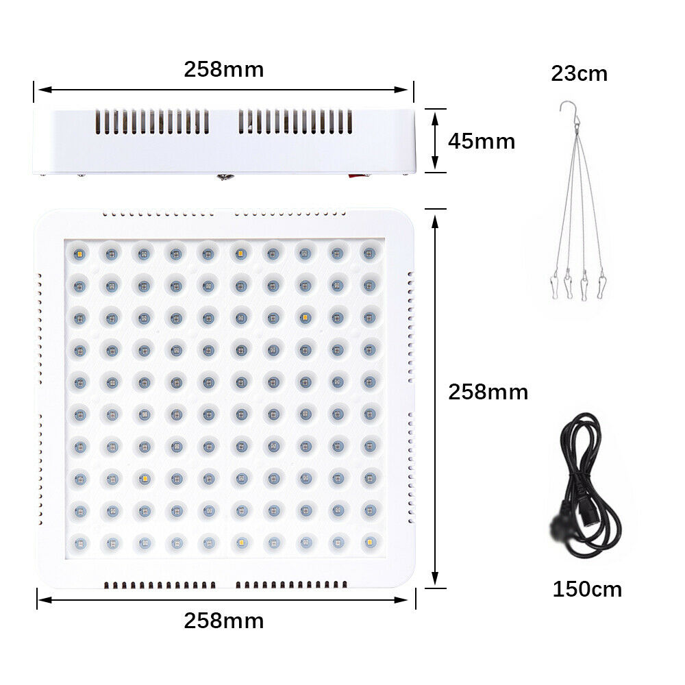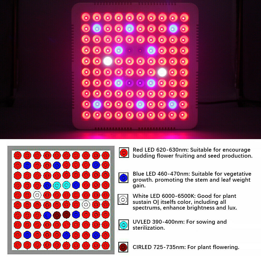 - LED Diode Count: 100 PCS(Red+Blue+White+UV+IR)