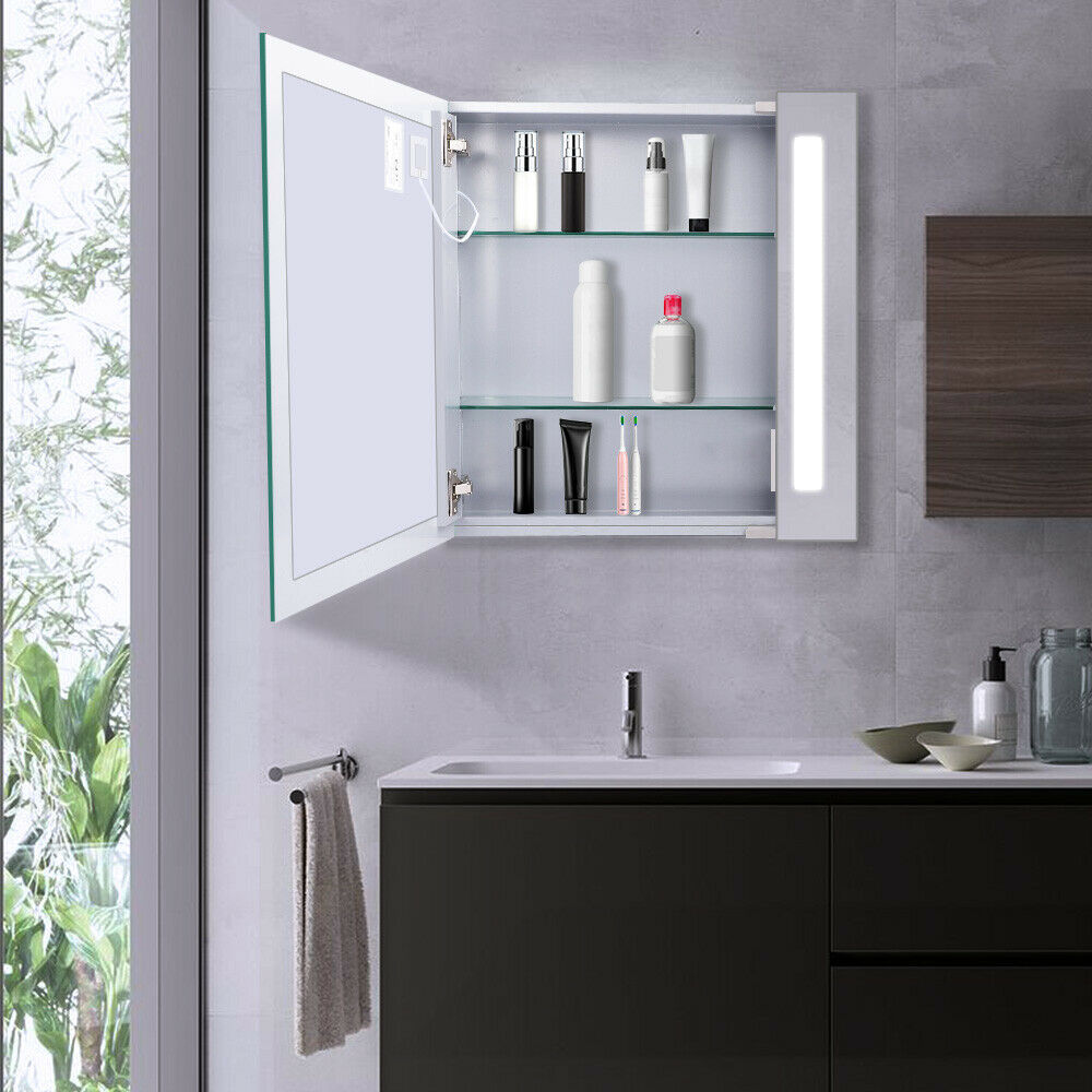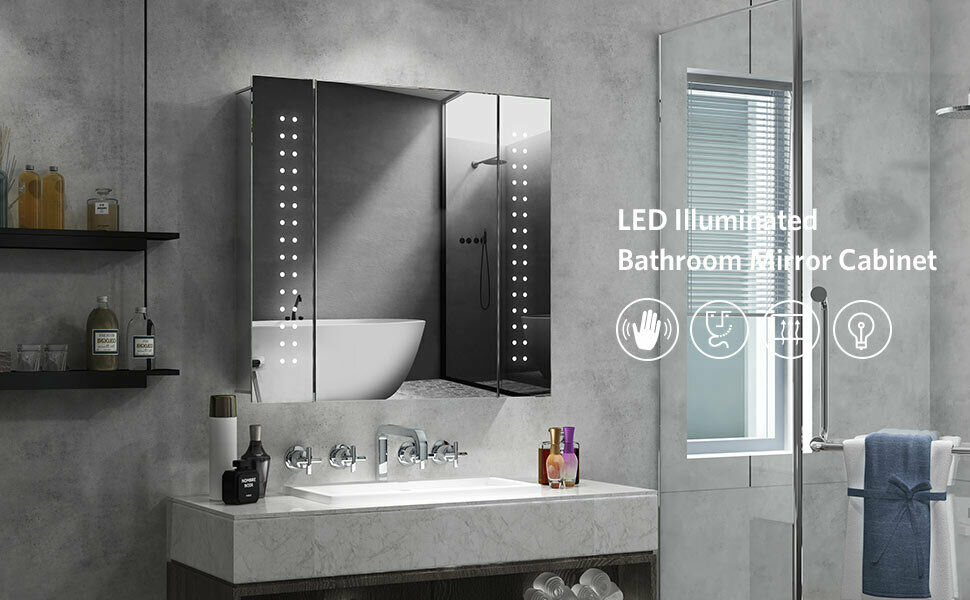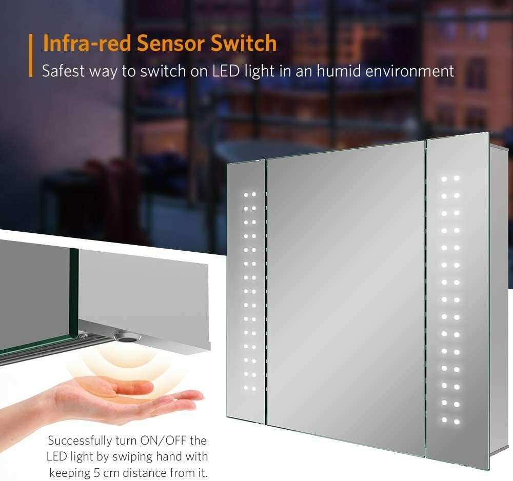 Led Illuminated Bathroom Mirror Cabinet With Shaver Socket Demister Touch Sensor