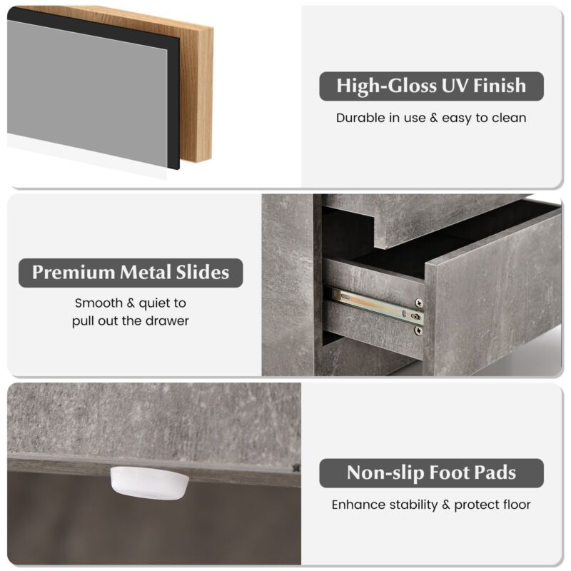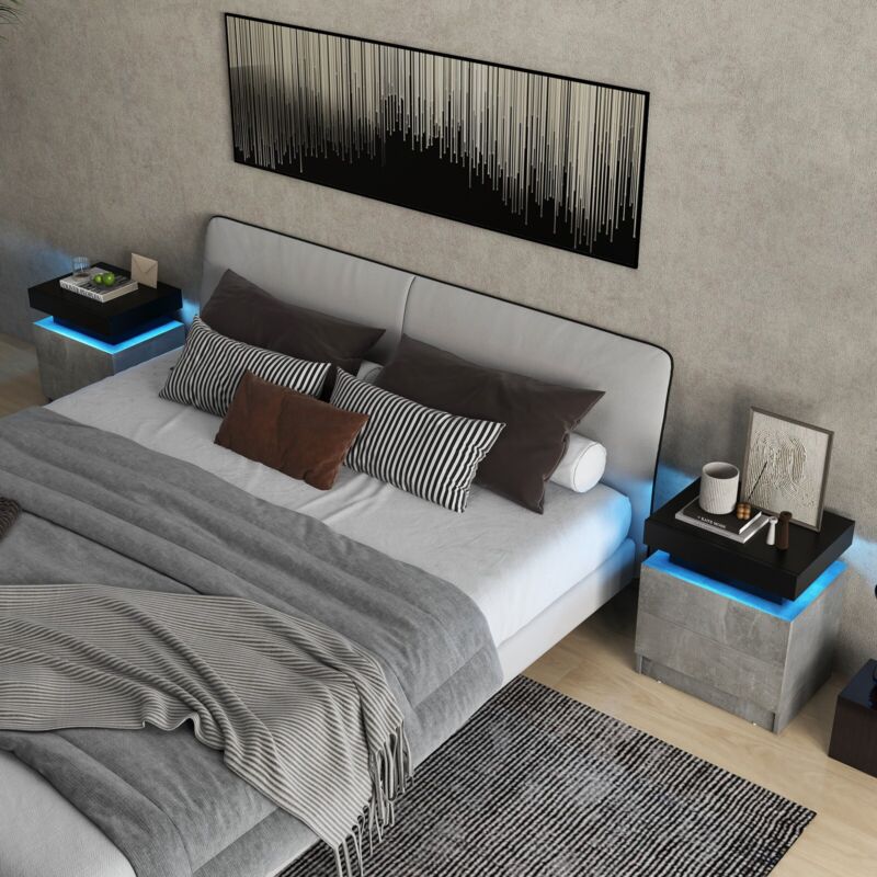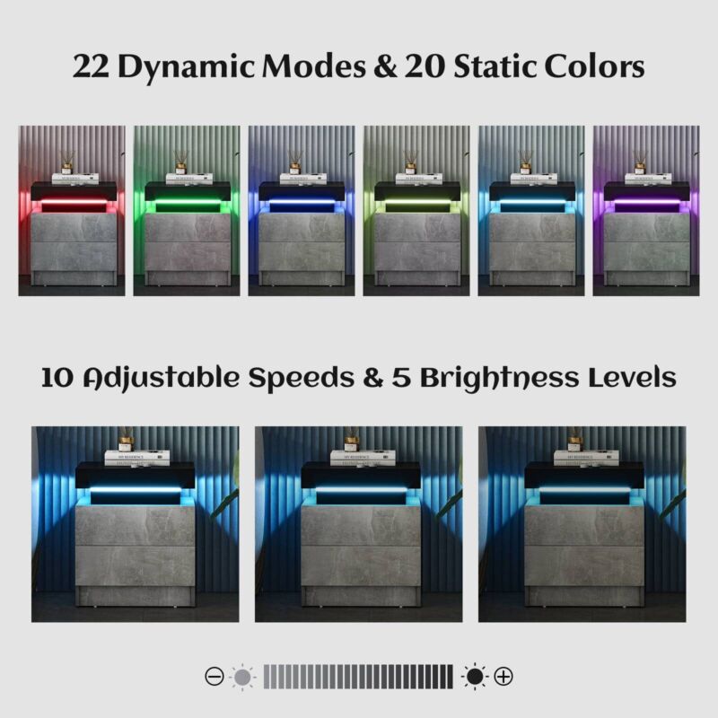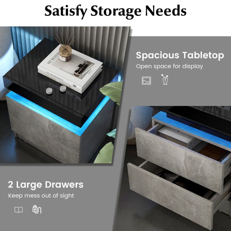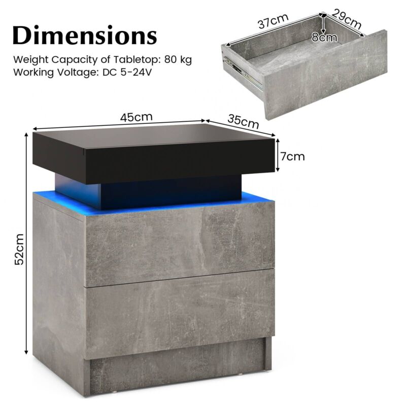 LED Nightstand Modern Faux Marble End Table Versatile Bedside Table W/ 2 Drawers