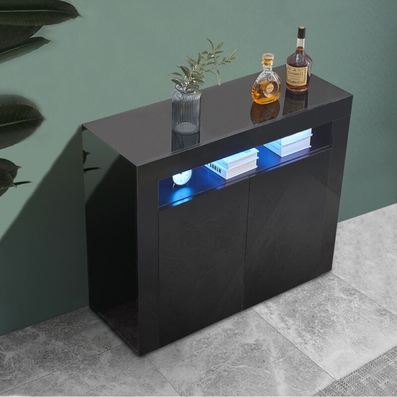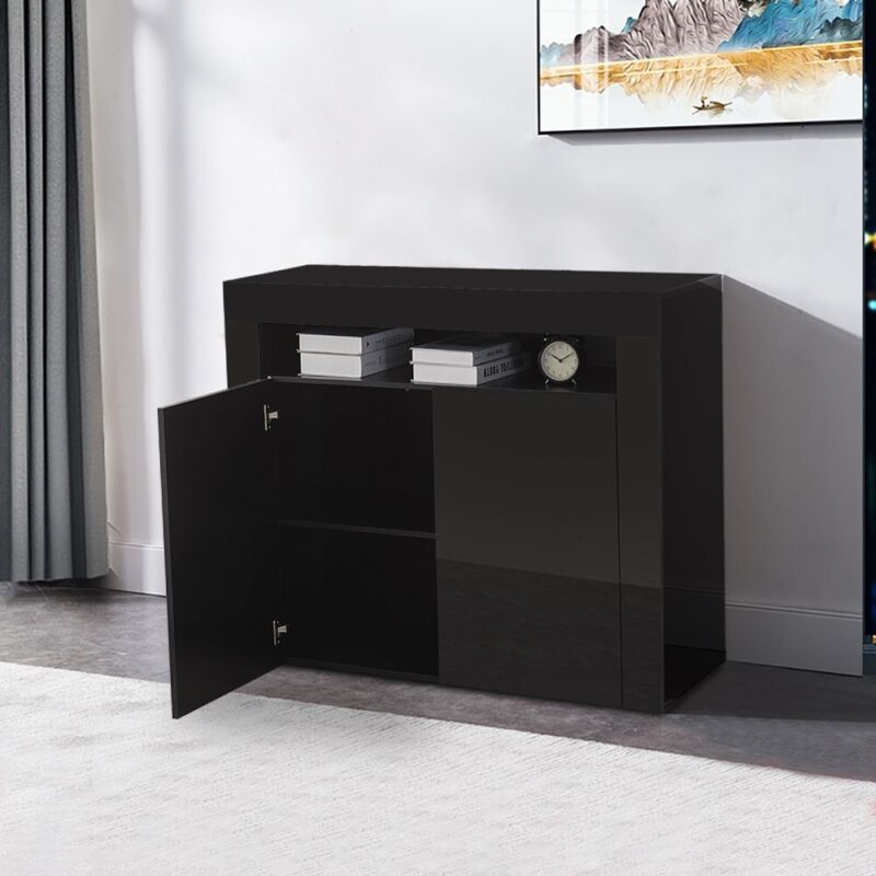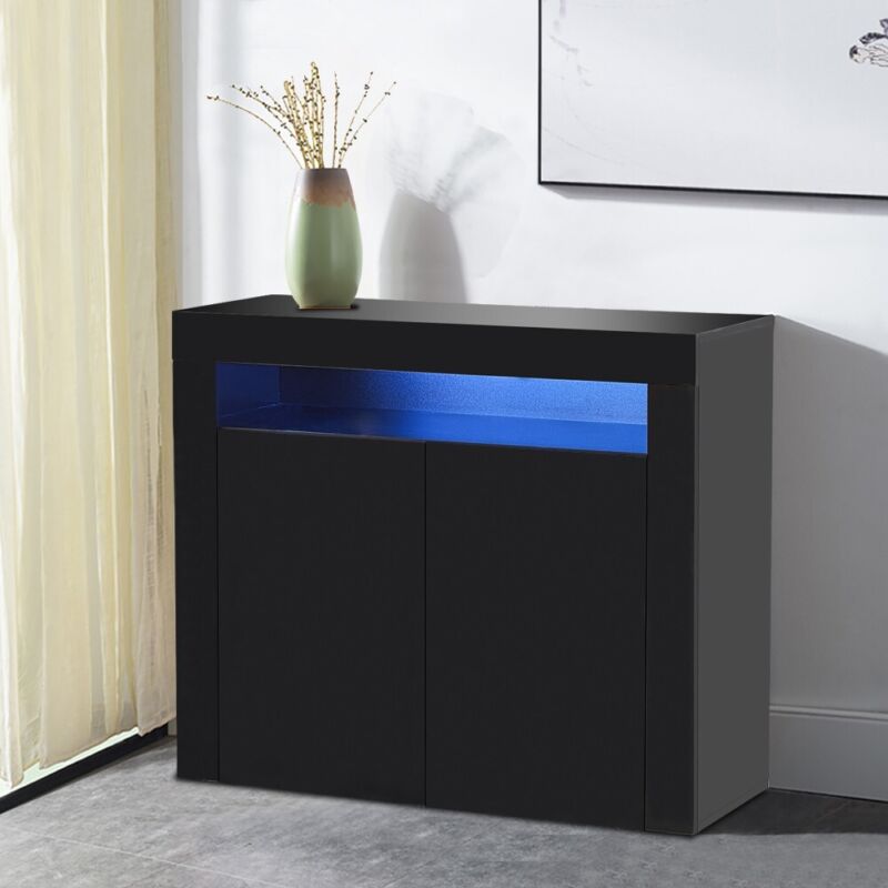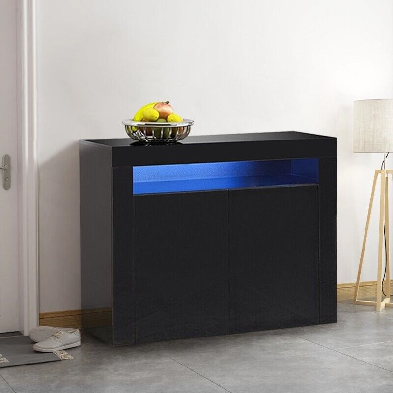 LED Sideboard Cabinet Storage 2 Doors Cupboard Buffet High Gloss Front Black