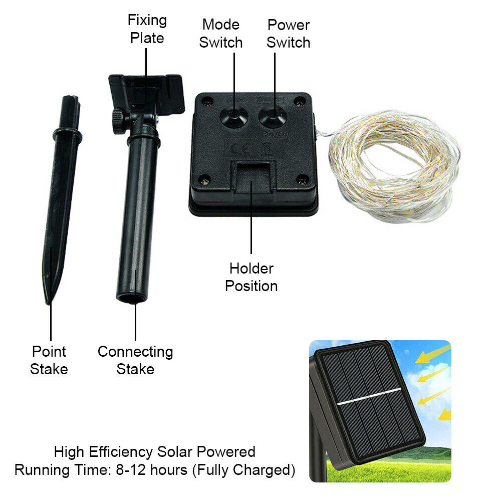 LED Solar String Lights Waterproof Copper Wire Fairy Christmas Party Outdoor
