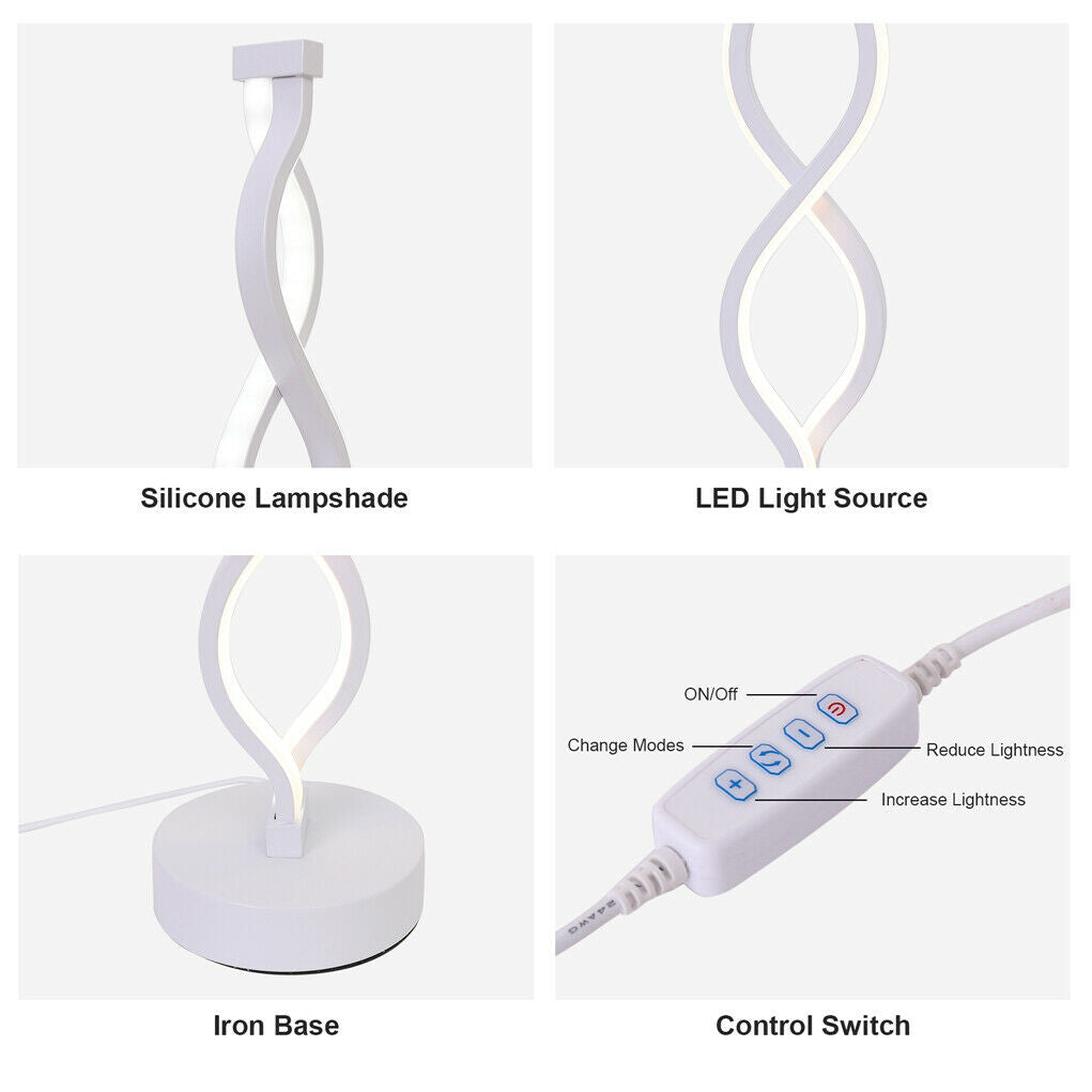 LED Table Lamp Dual Spiral Desk Lamp Warm White Modern Reading Light Bedside USB