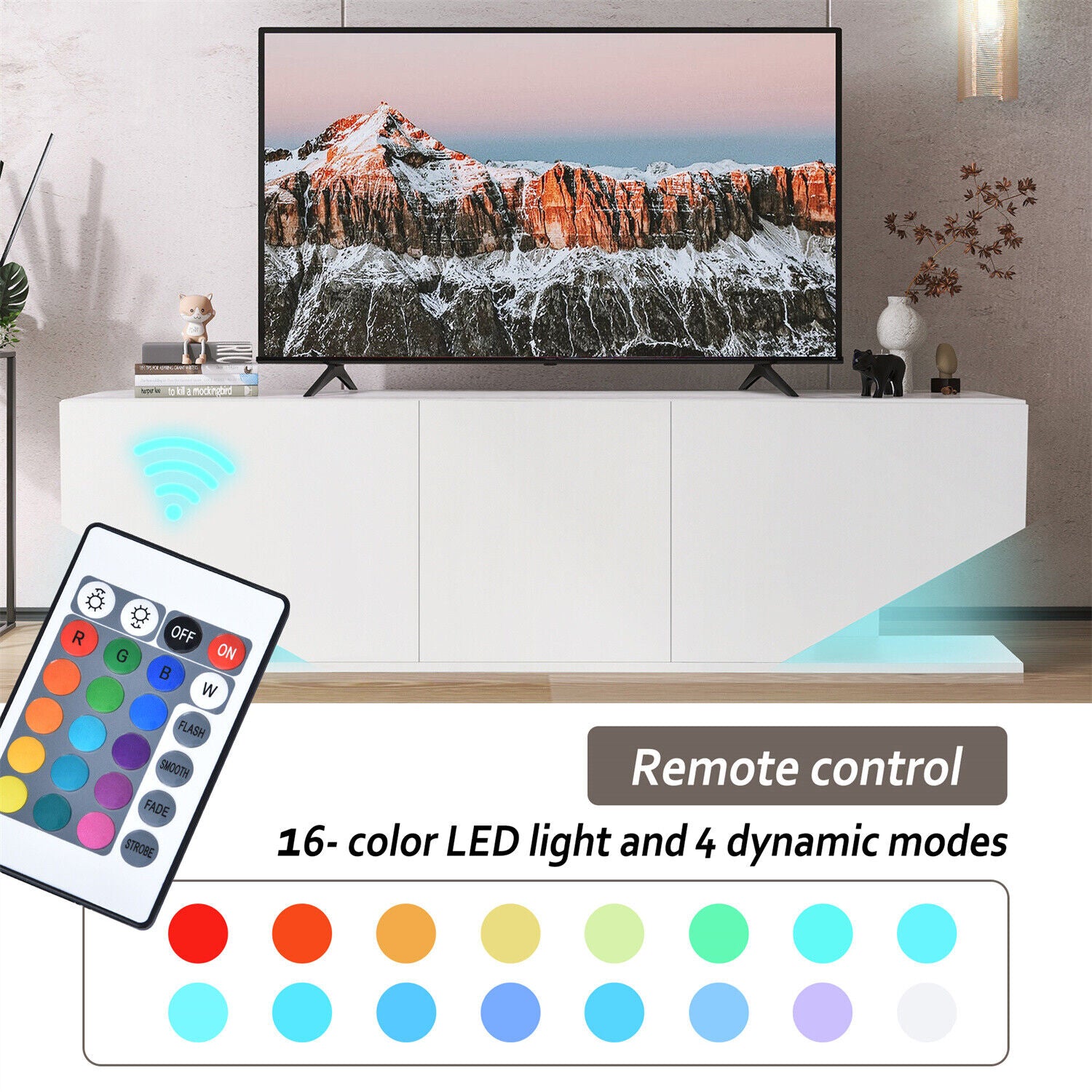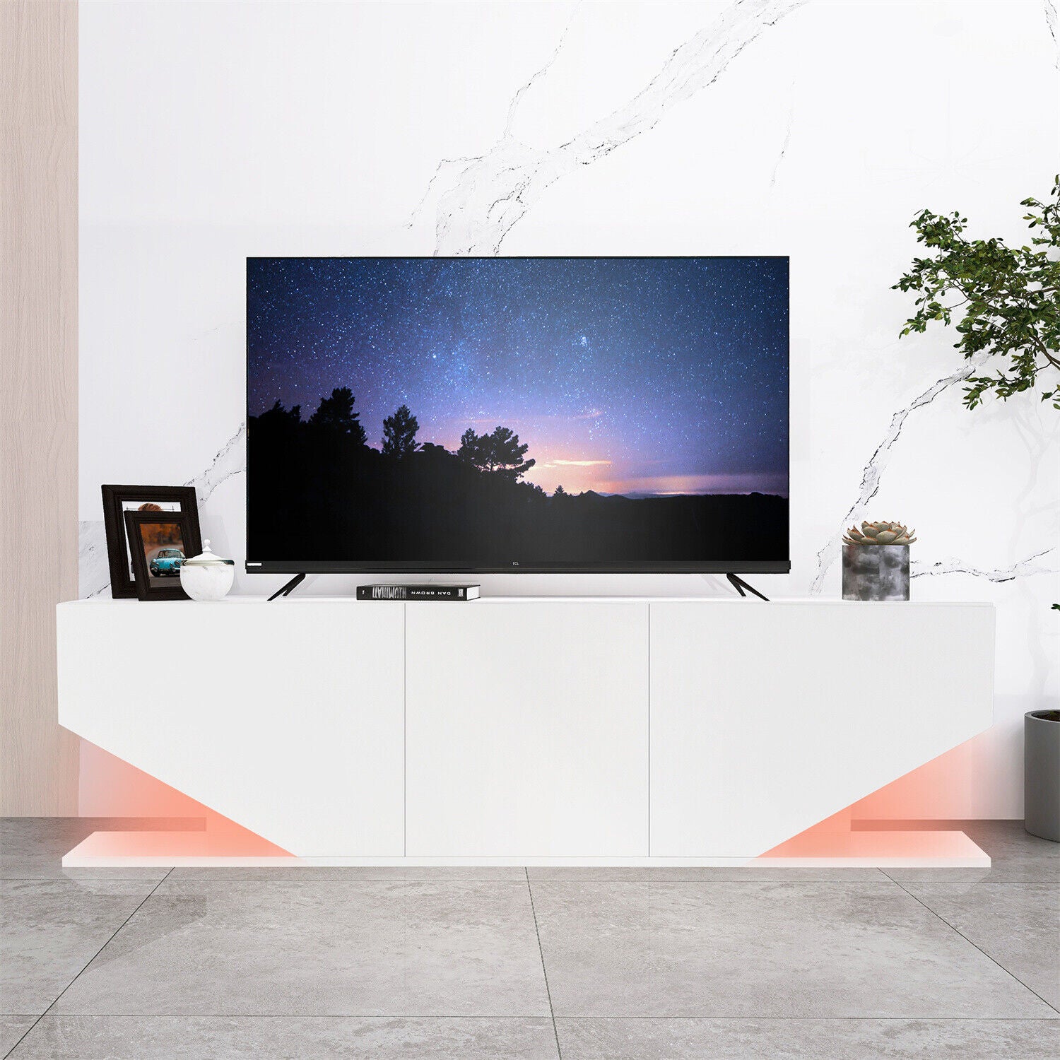 LED TV Stand Cabinet Unit Modern High Gloss Doors MDF 140cm Entertainment RGB