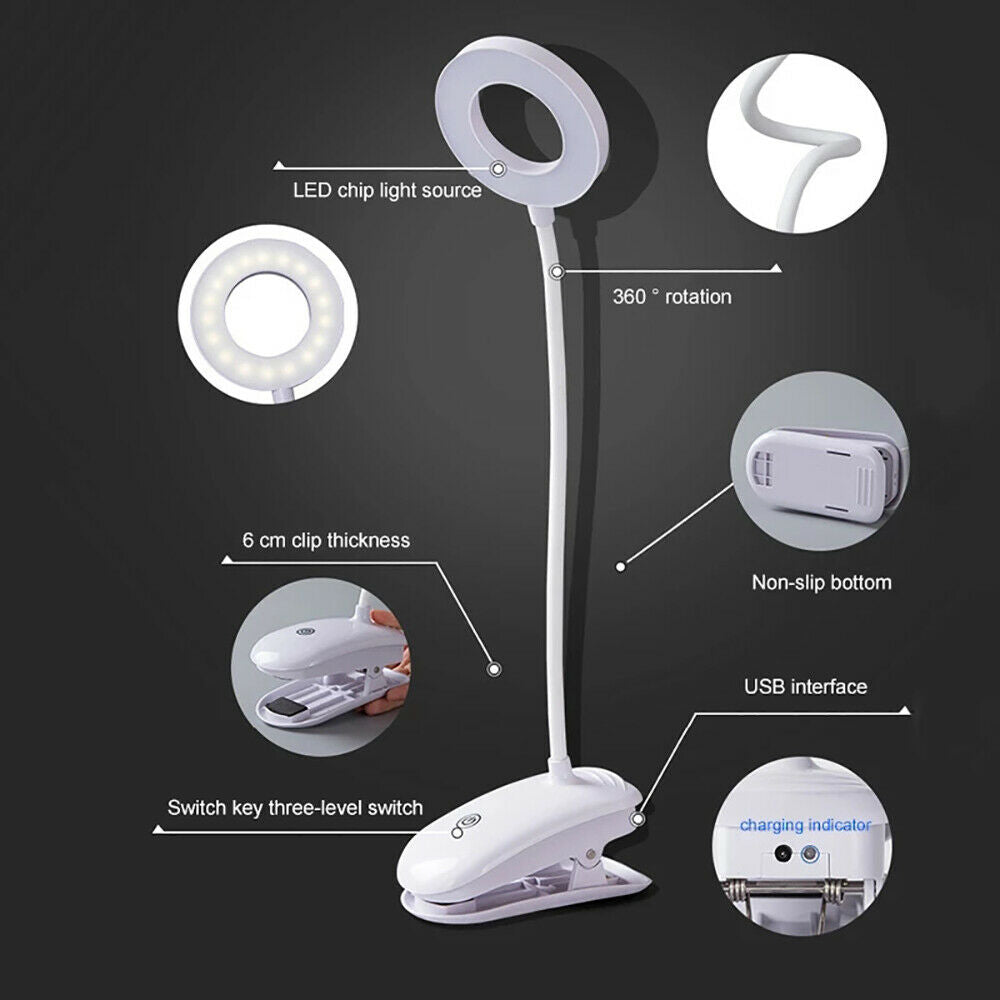 LED USB Clip On Flexible Desk Lamp Dimmable Memory Bed Reading Table Study Light