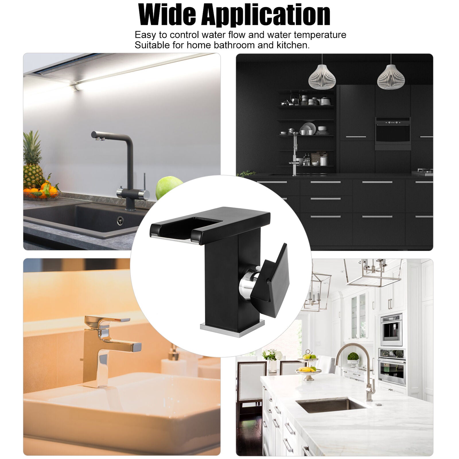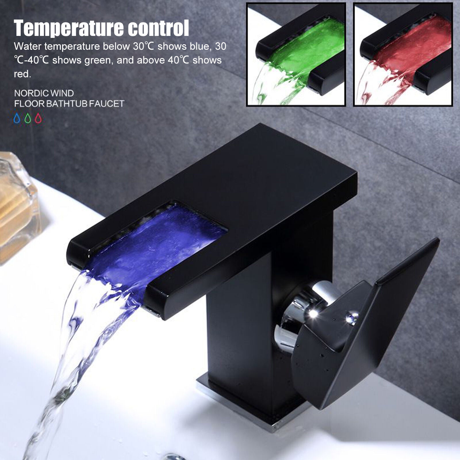 LED Waterfall Tap Bathroom Basin Taps Mixer Bath Single Lever Brass Deck Mounted