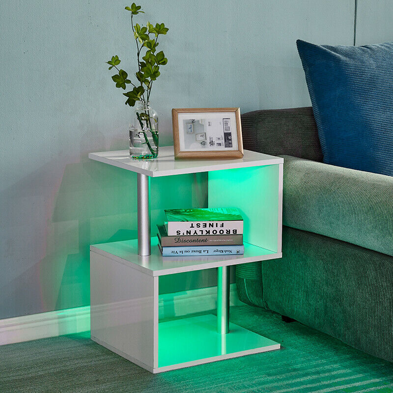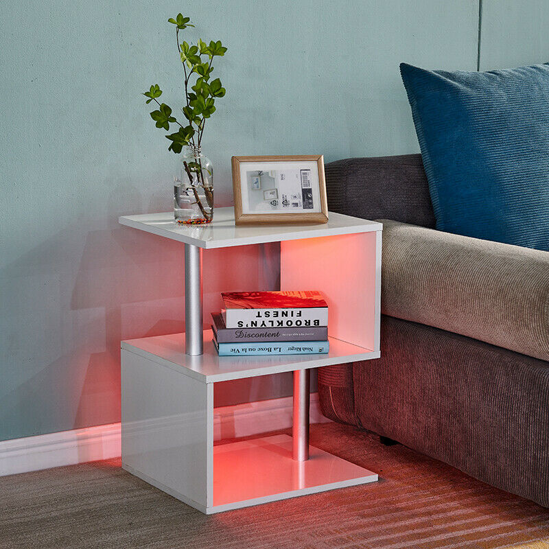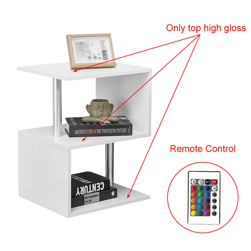 LED White High Gloss Side End Table Coffee Table Multi-color Remote Control New