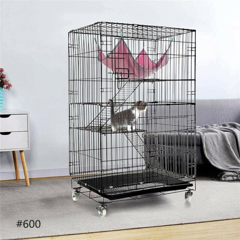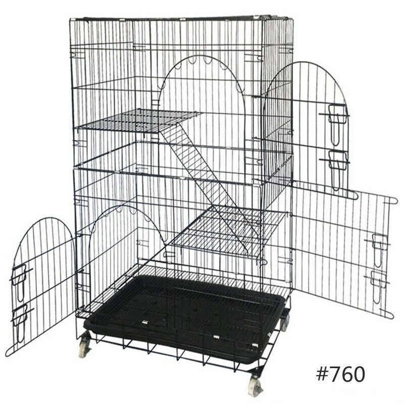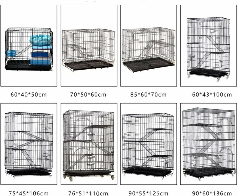 LEVEL Cat Cage Foldable Metal Pet Crate Playpen Spacious Kitten Ferret Cage