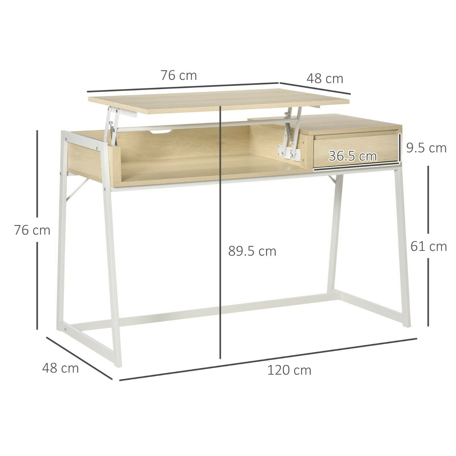 Lift Top Computer Desk Hidden Storage Shelf Drawer Writing Table Home Office