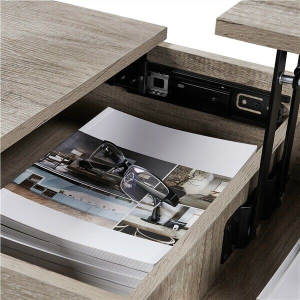 Lift-top Storage Coffee Table w/ Side Drawer for Living Rooms, Metal Tea Table