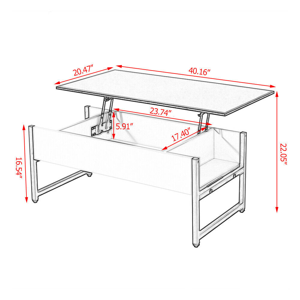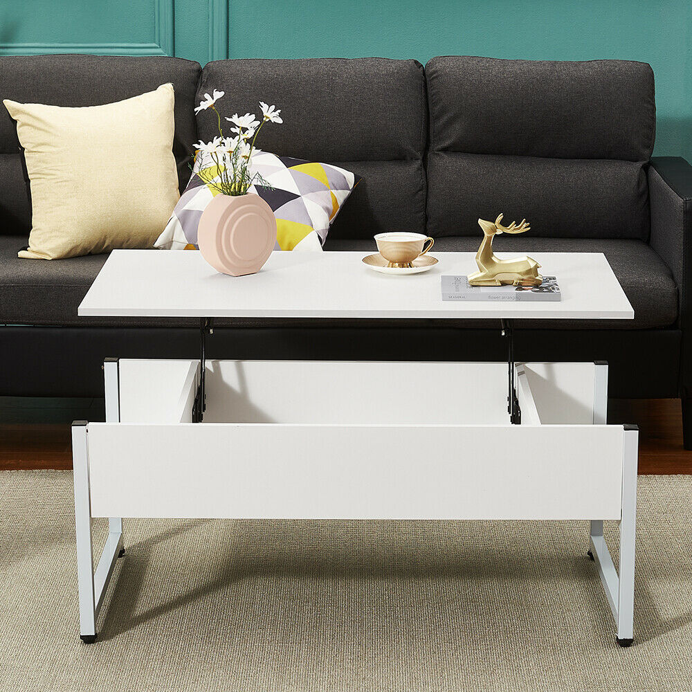 Lift Up Top Coffee Tables with Hidden Storage Metal Frame Leg Modern Tea Table