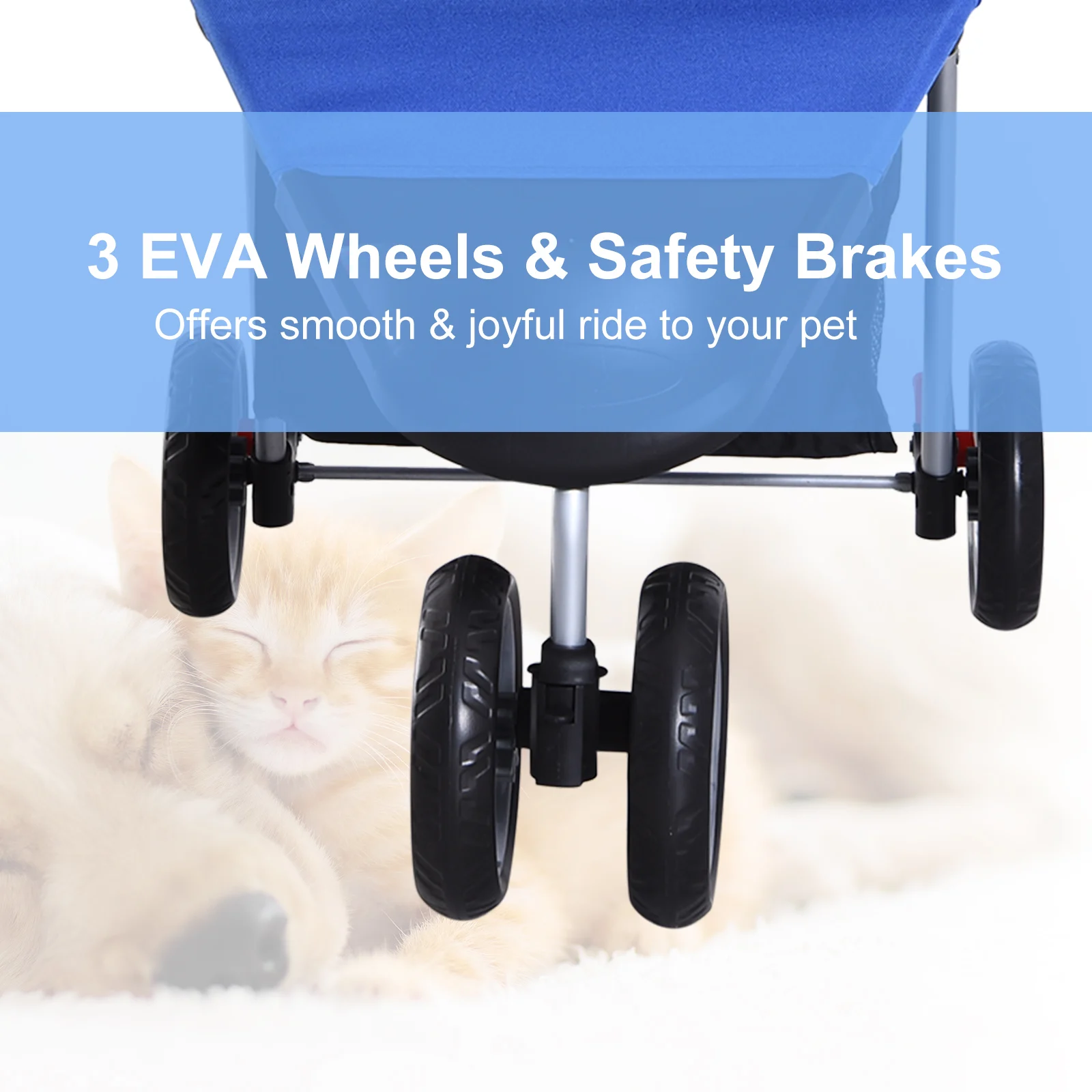 Lightweight Pet Stroller 3 Wheel Buggy Blue Folding Dog Puppy Pushchair Pram