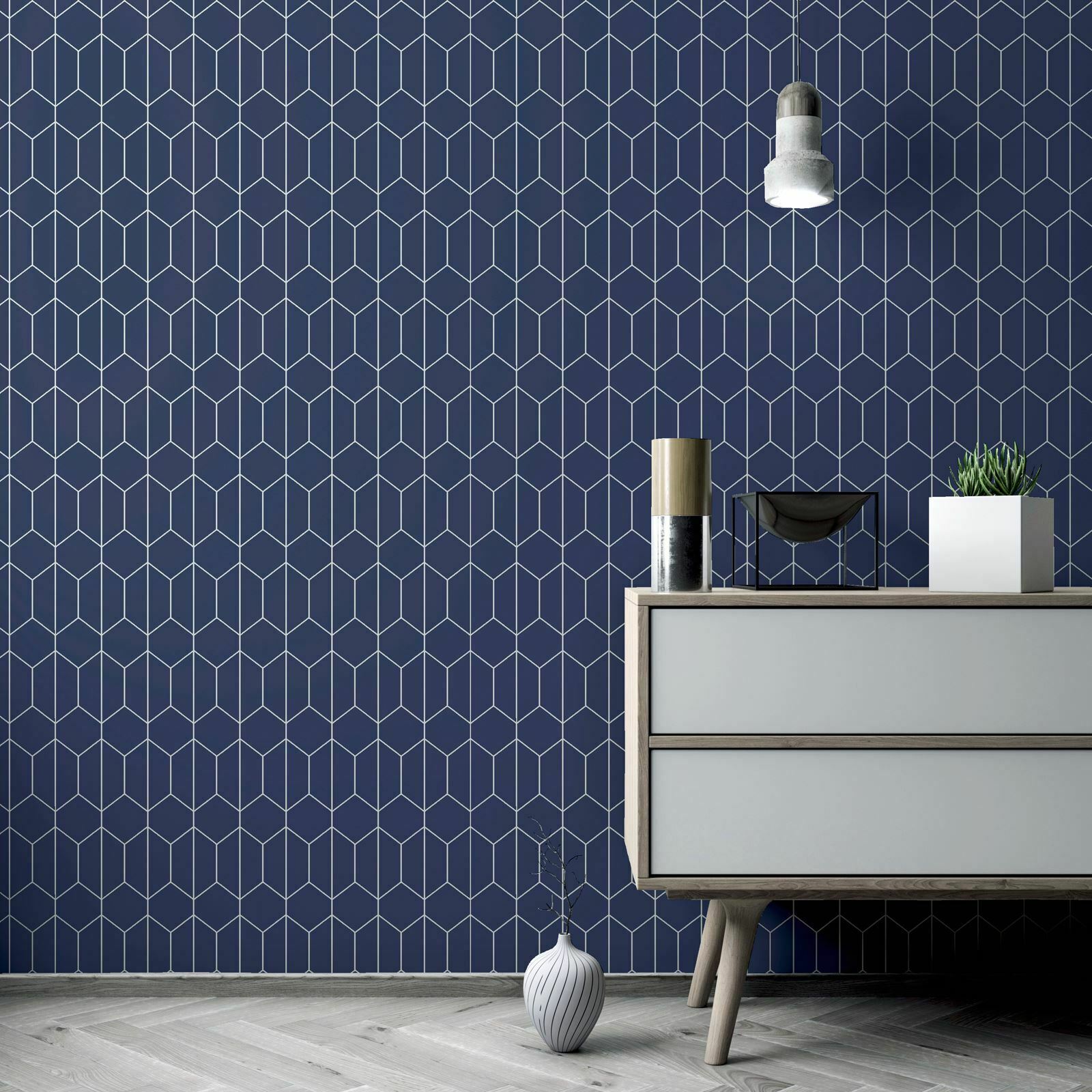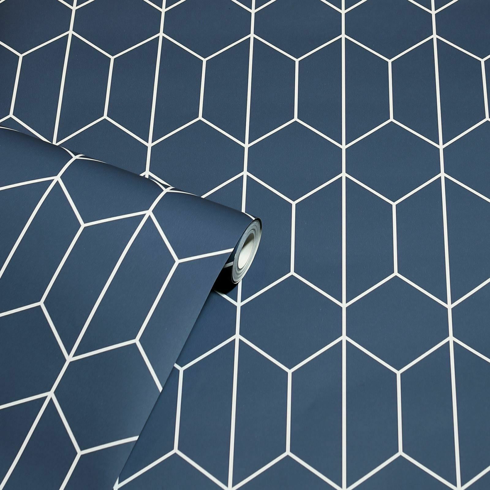 Linear Hexagons Geometric Honeycomb Shapes Arthouse Wallpaper - Navy 909702