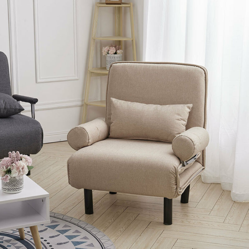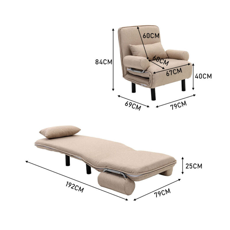 Linen Fabric Folding 2 in1 Single Sofa Bed Chair Armchair Sleeper Living Bedroom