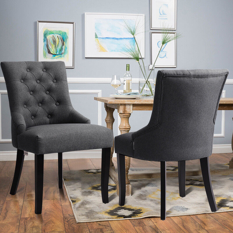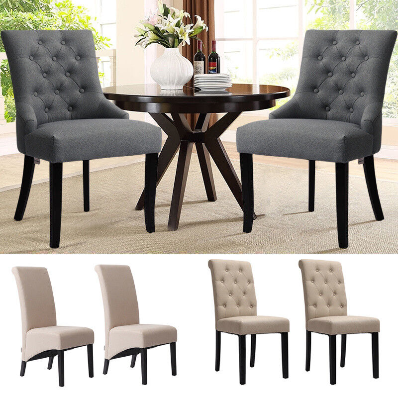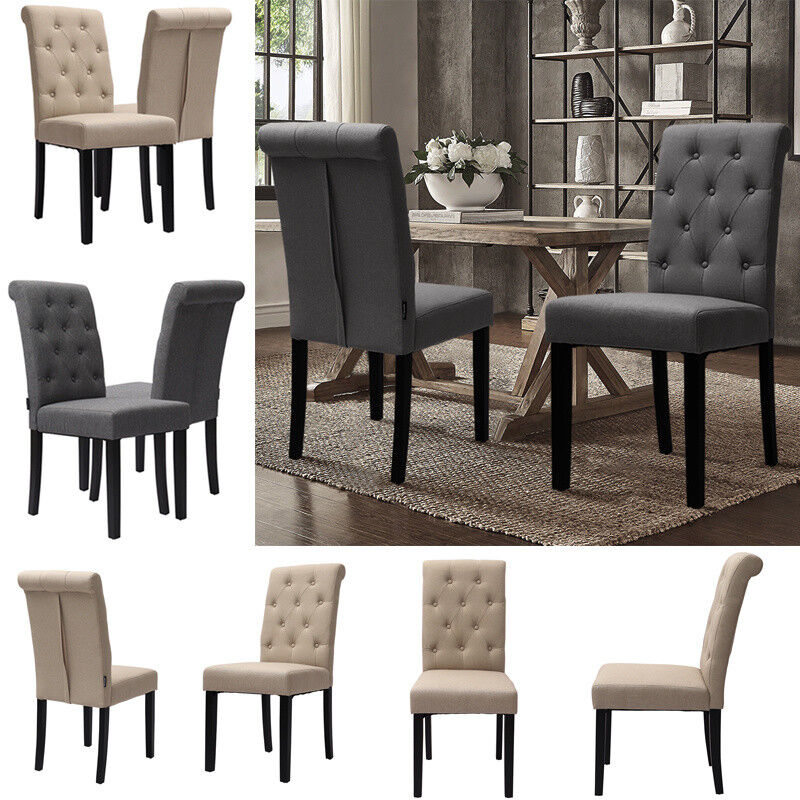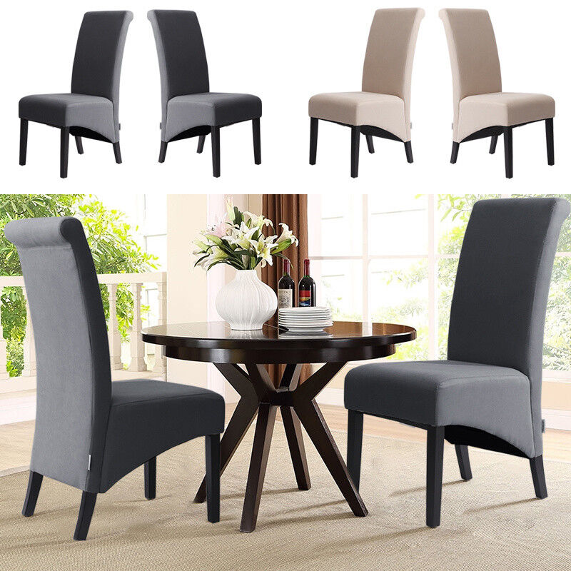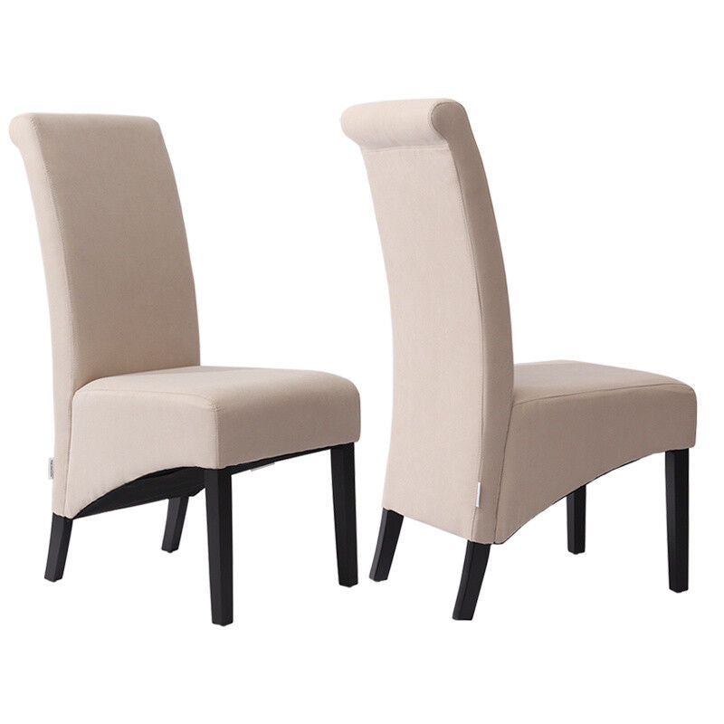 Linen Fabric Scroll High Back Kitchen Dining Room Chairs Upholstered Furnitures