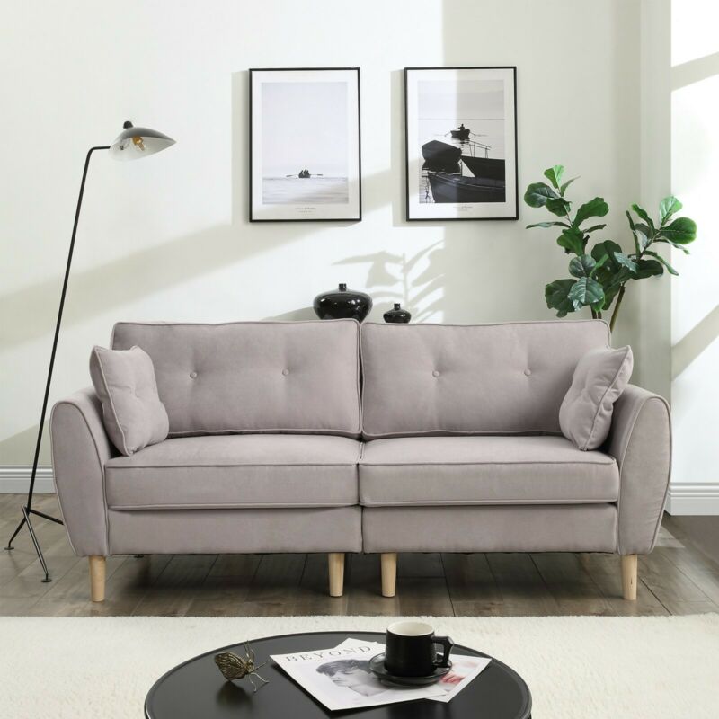 Linen Fabric Sofa Bed Couch Convertible Recliner Back Thick Cushions 3 Seater