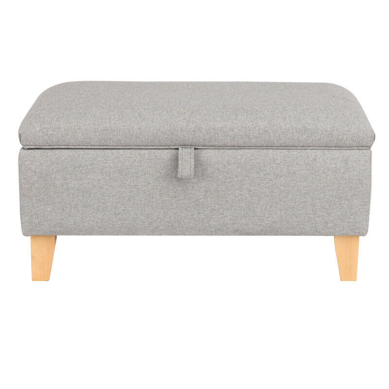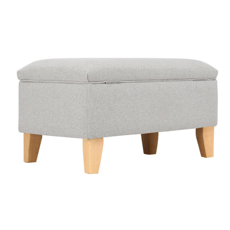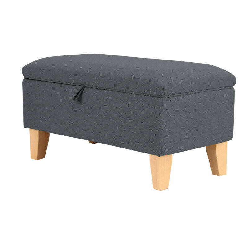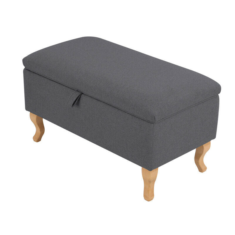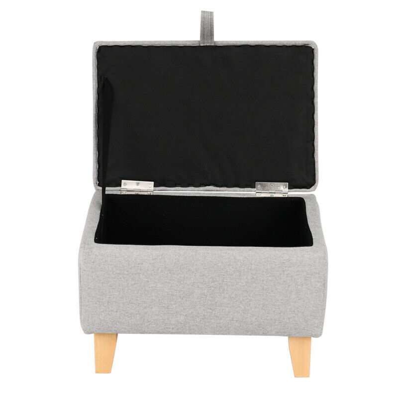 LINEN STORAGE OTTOMAN POUFFE SEAT FOOT STOOL HOME STORAGE BENCH BOX WOODEN LEGS