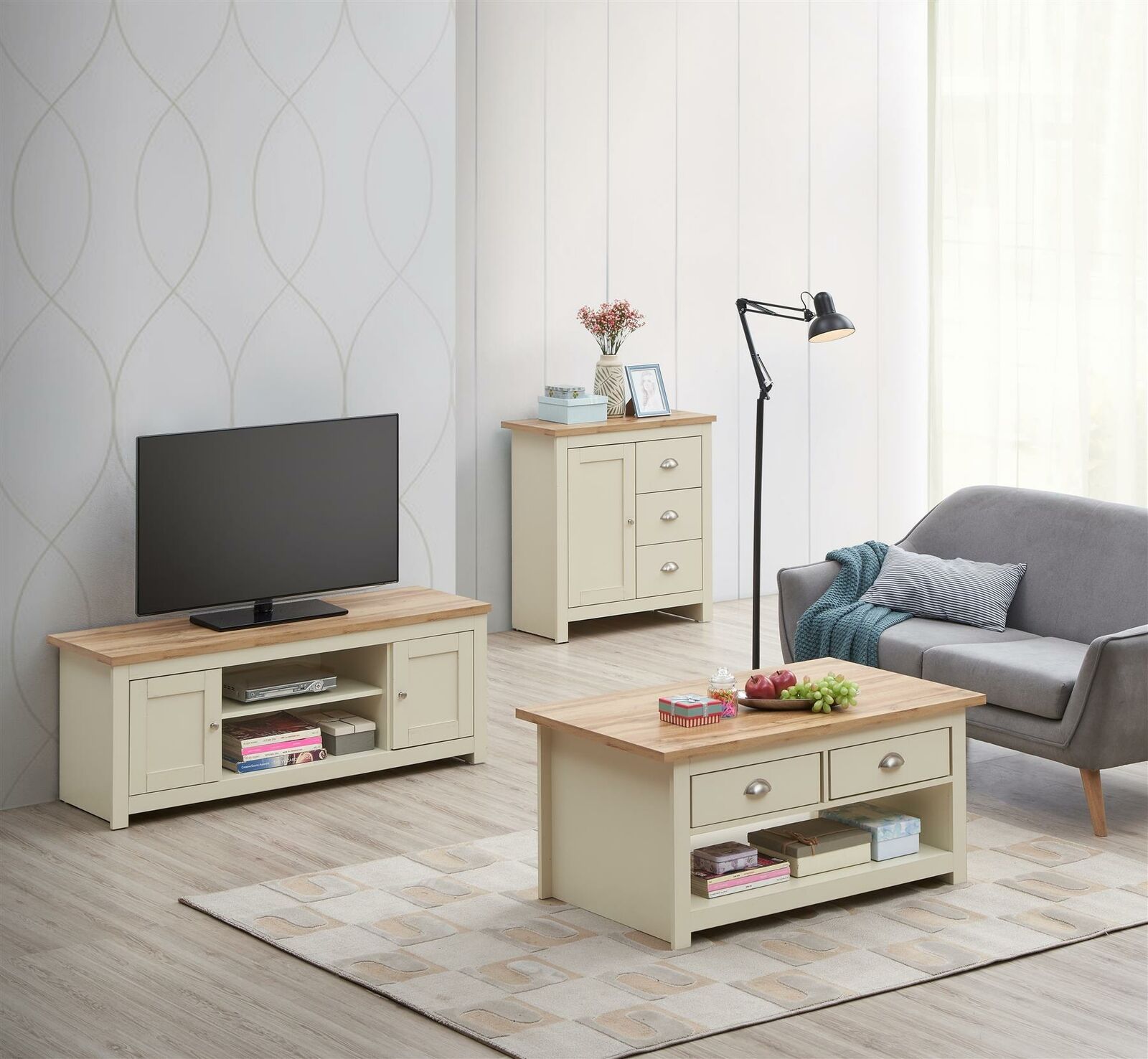 Lisbon 2 Drawer Coffee Tea Side Table Shelf Storage Furniture Living Room Cream