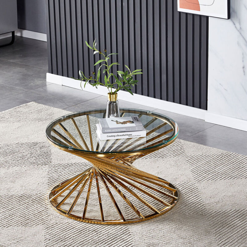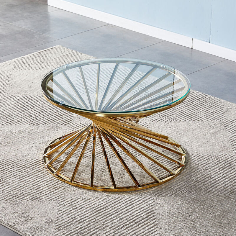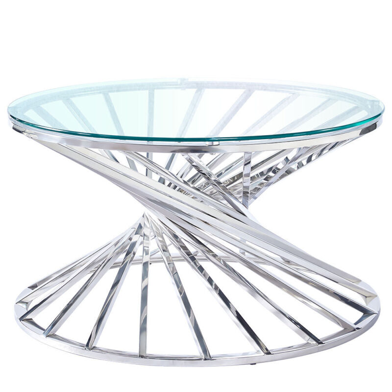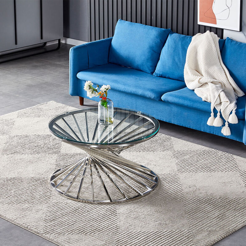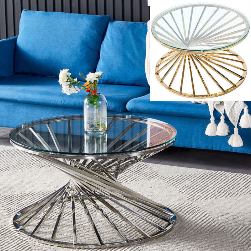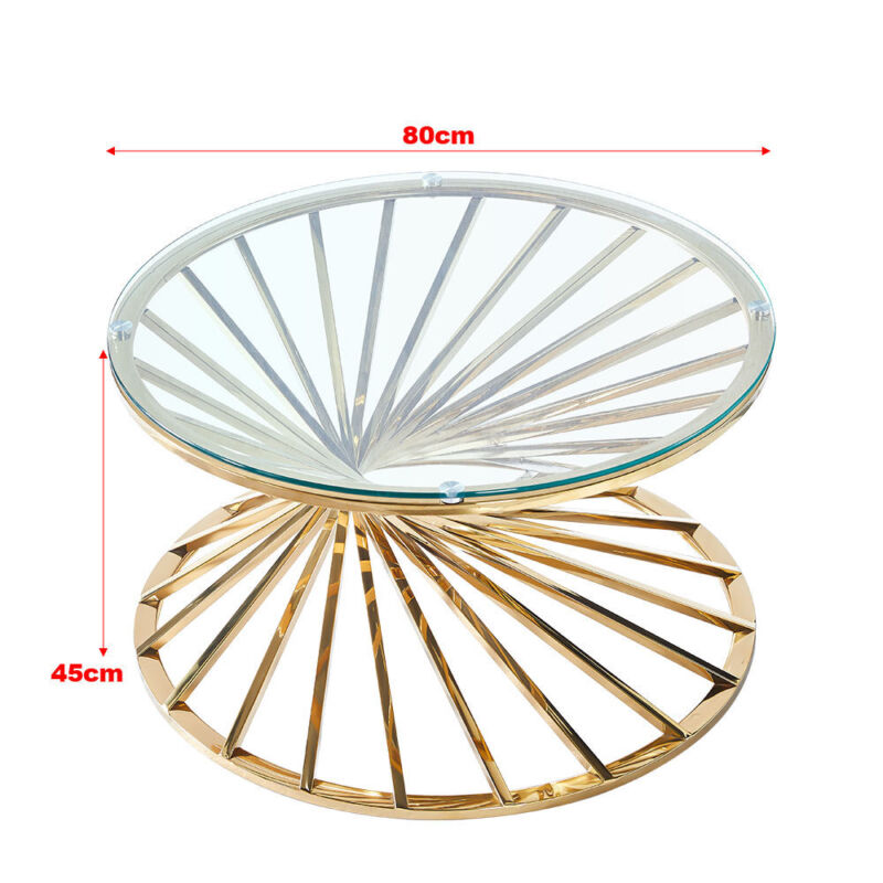 Living Room Coffee Table 80cm Round Tempered Glass Top & Stainless Steel Leg