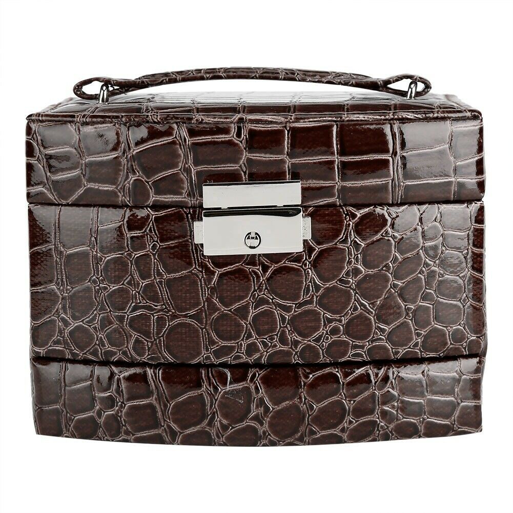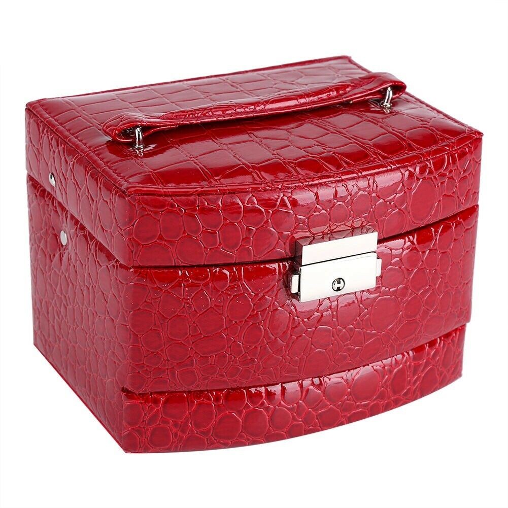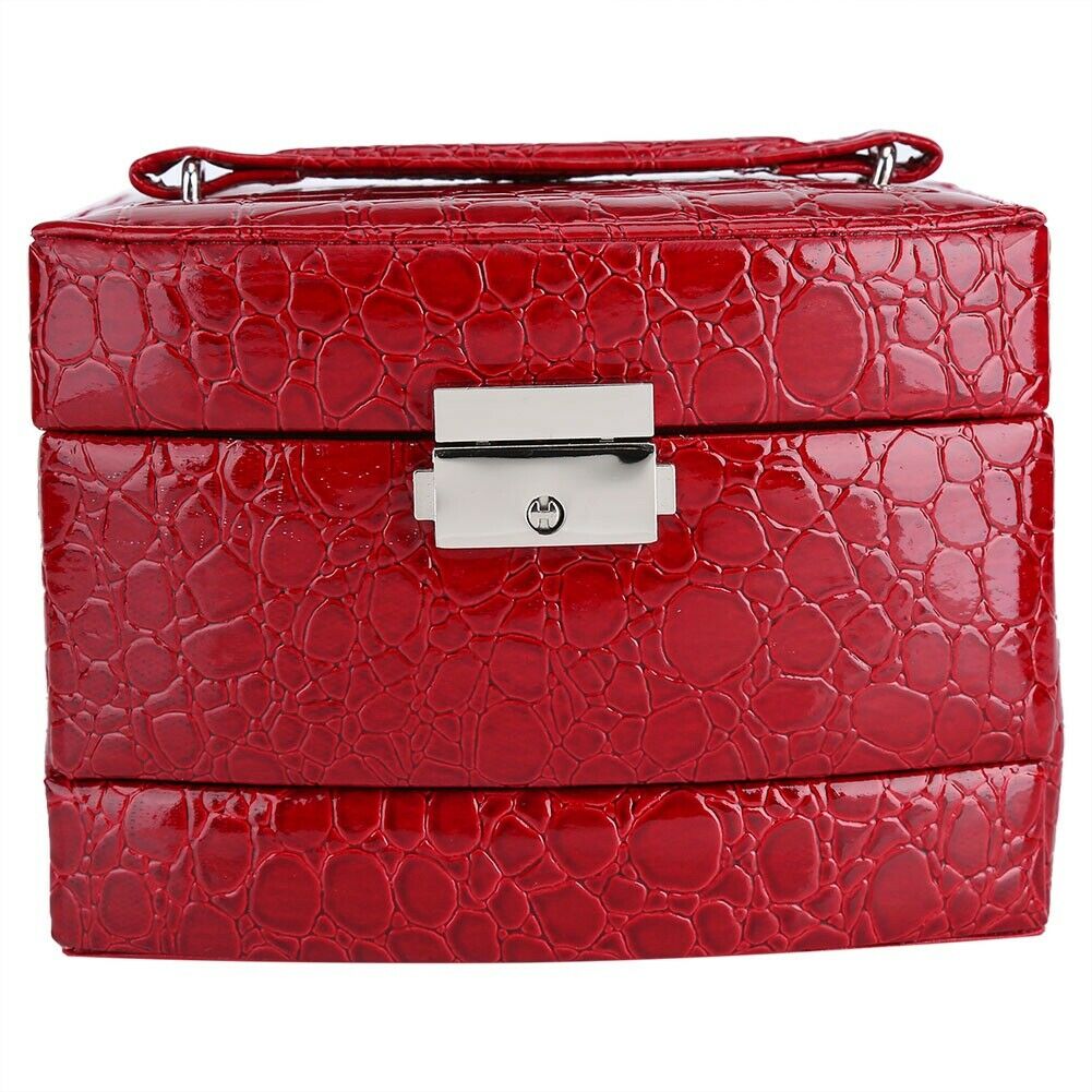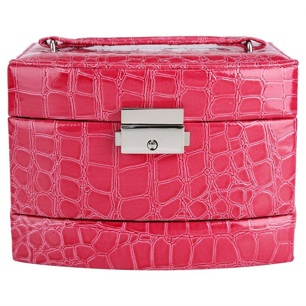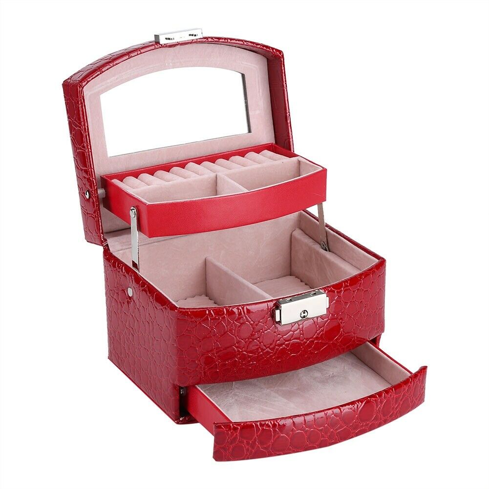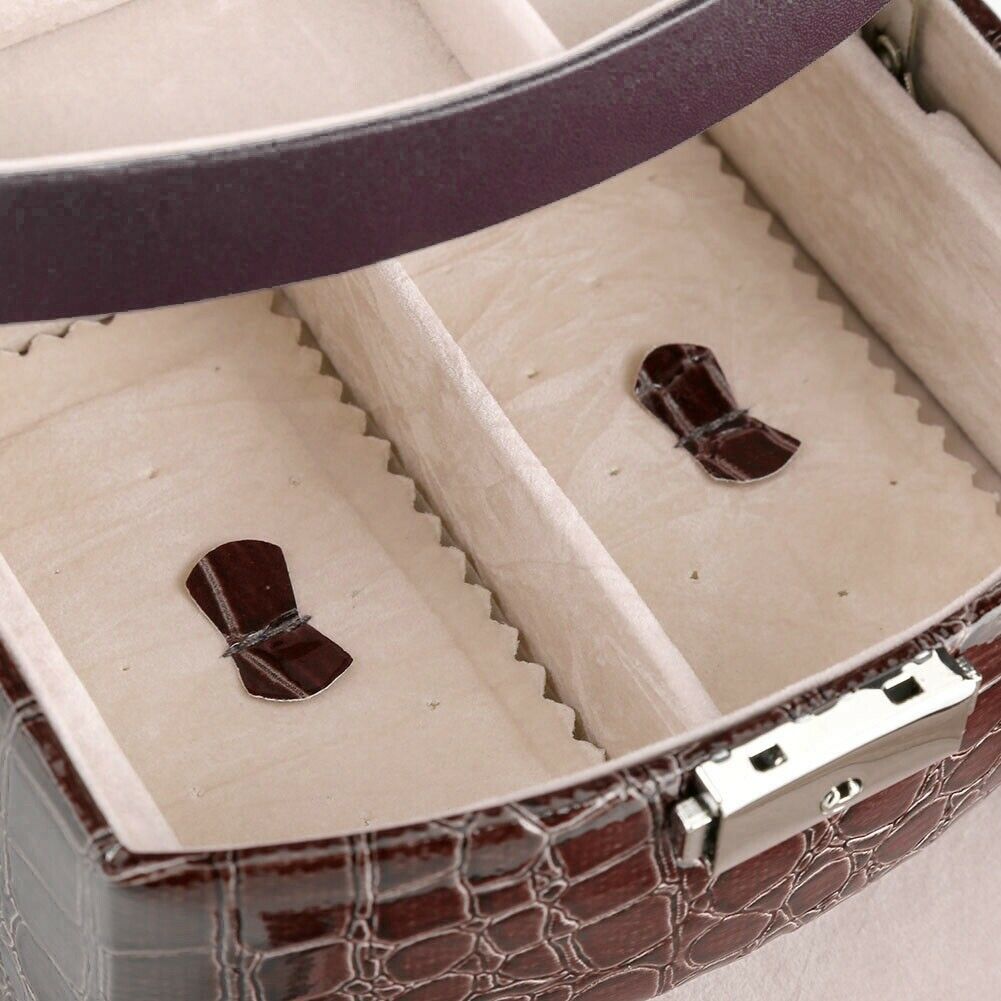 LOCKABLE 3 LAYERS BLACK JEWELLERY BOX LEATHER FINISH JEWELRY STORAGE 2 DRAWER