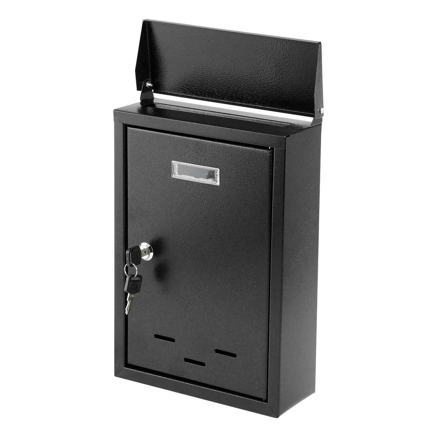 Lockable Black Steel Wall Mounted Letter Post Mail Box Mailbox Postbox Letterbox