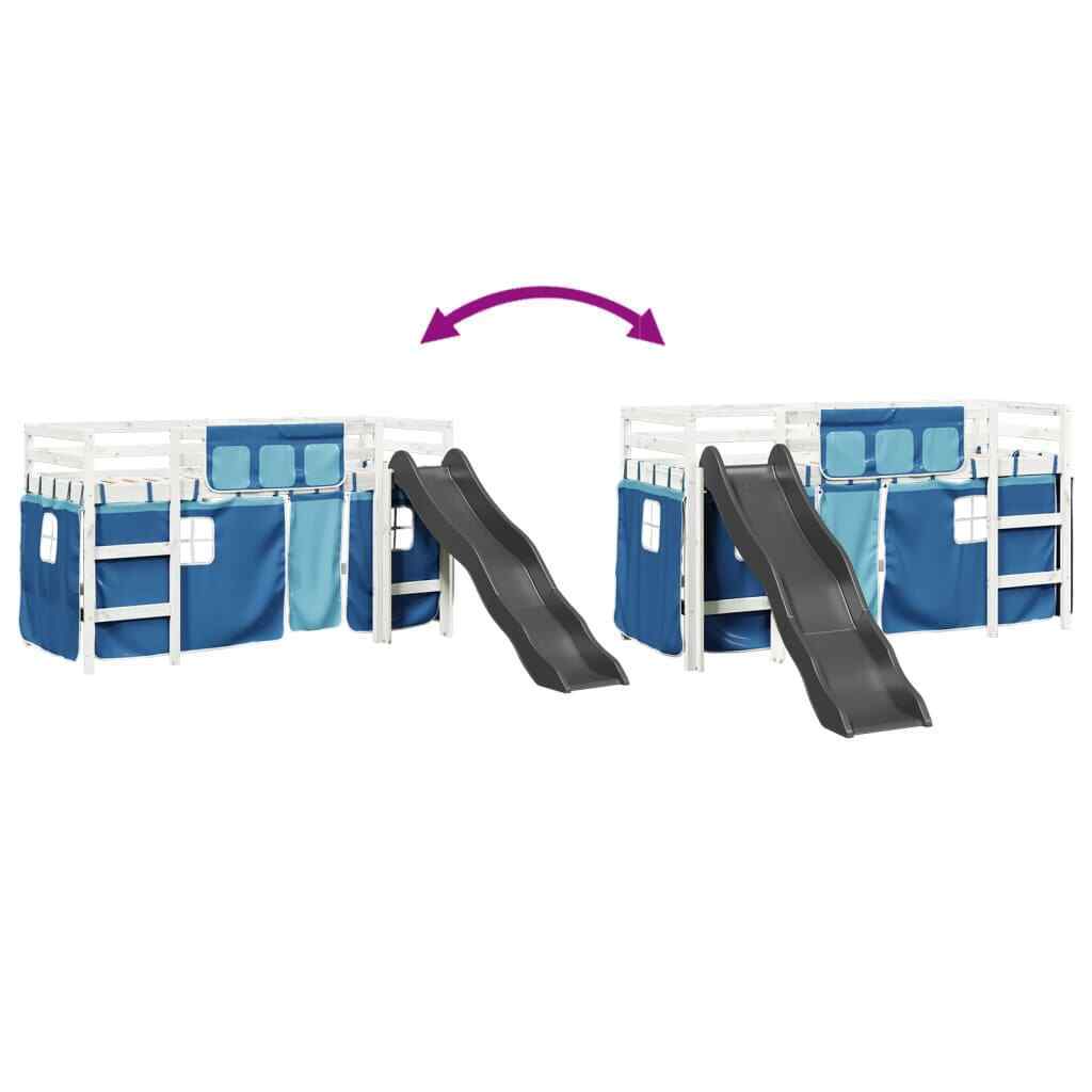 ' Loft Bed with Curtains Blue 90x200 Solid Wood Pine D9O1