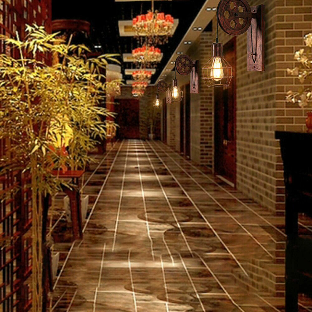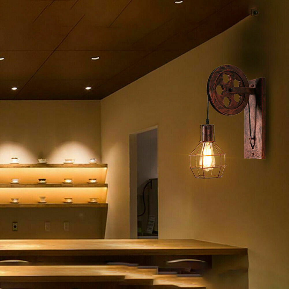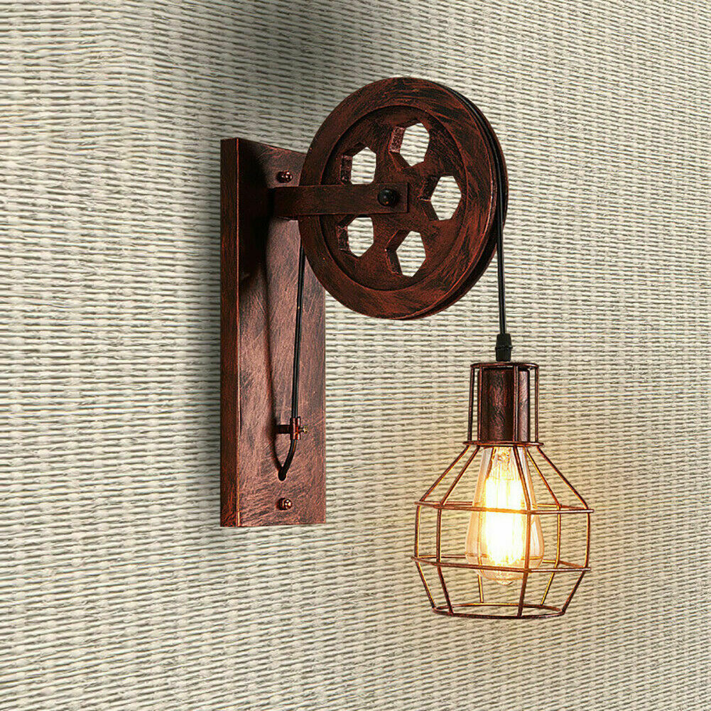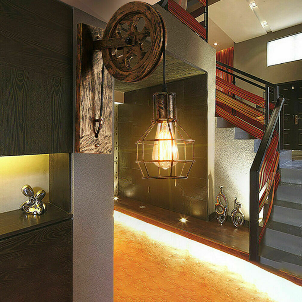 Loft Industrial Retro Wall Lamp Single Head Lifting Pulley Sconce Light Fixture