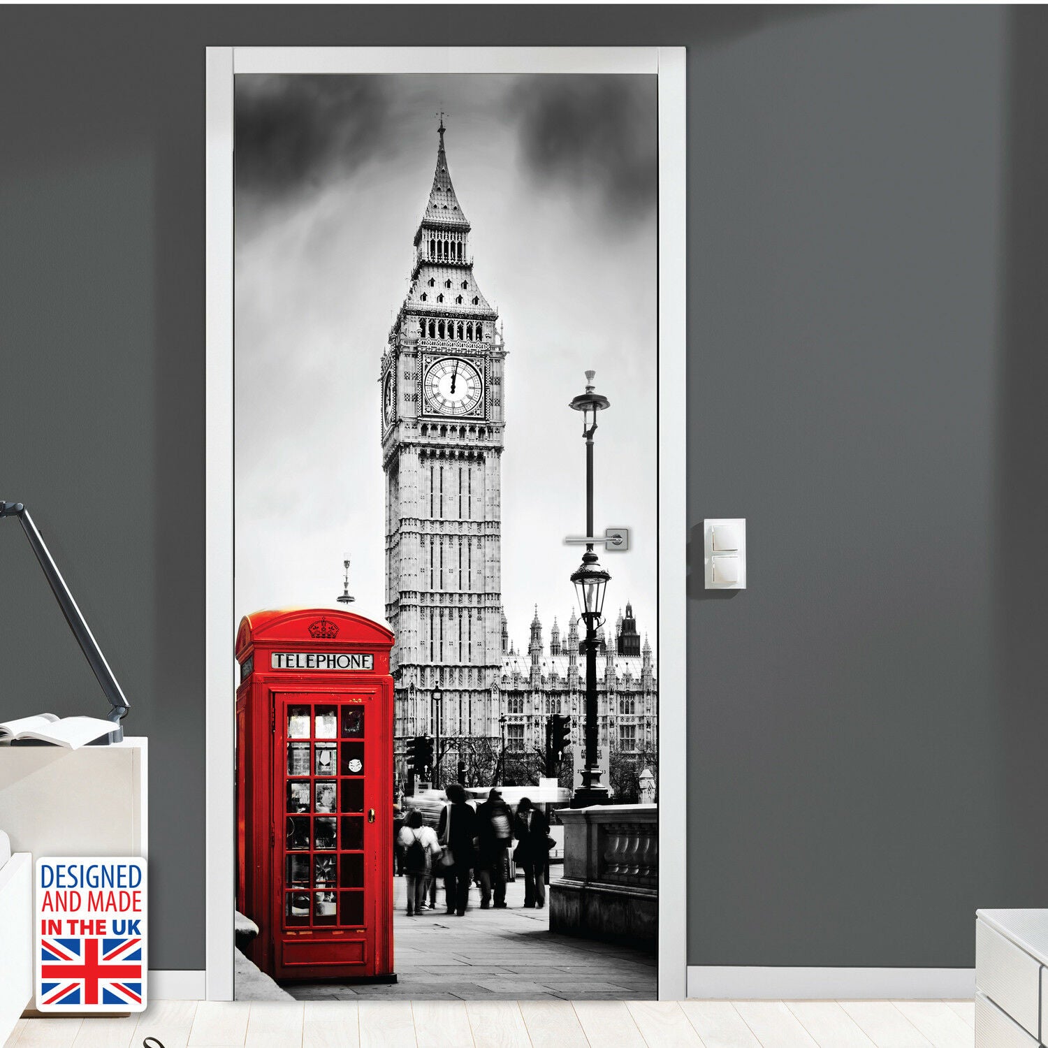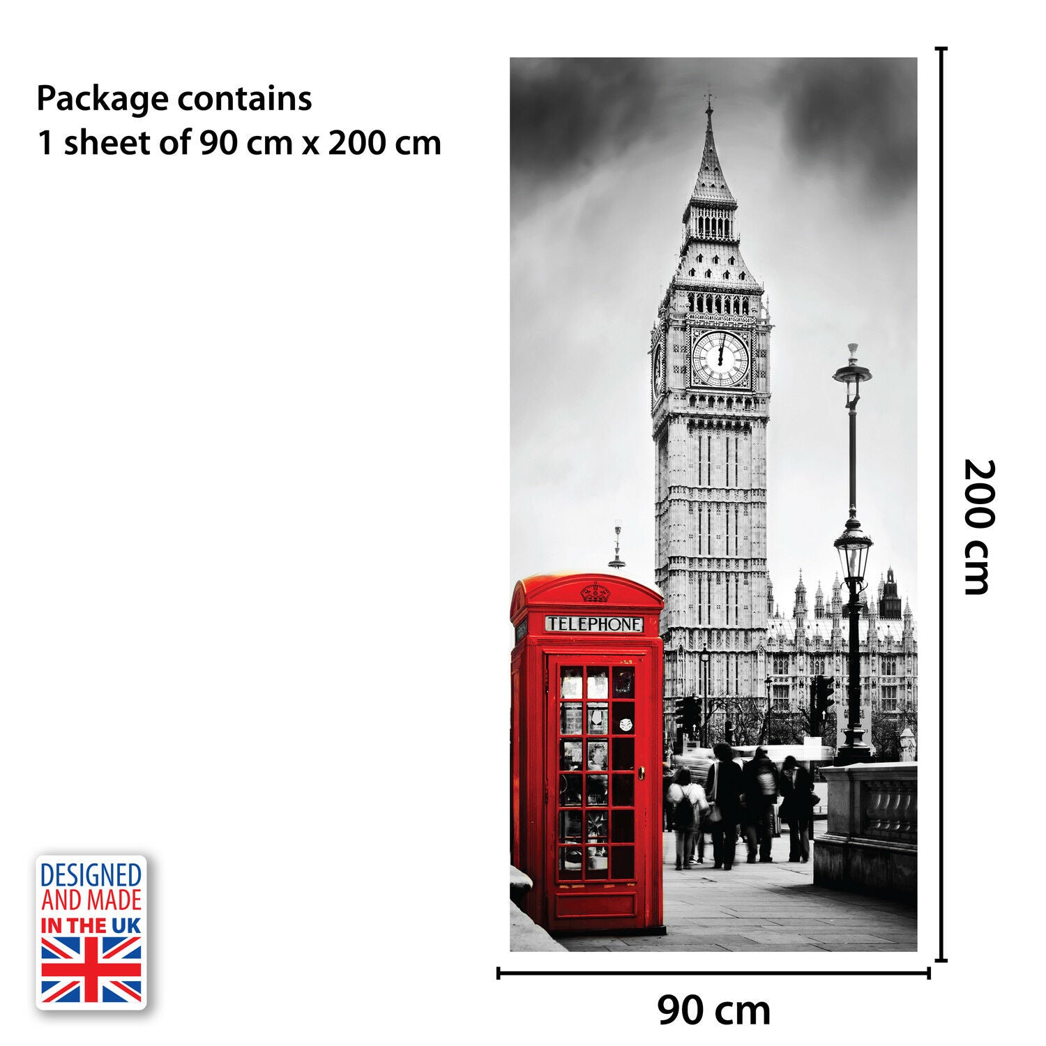 London Big Ban Red Telephone Door Mural 90cm Width Art Self-adhesive Stickers