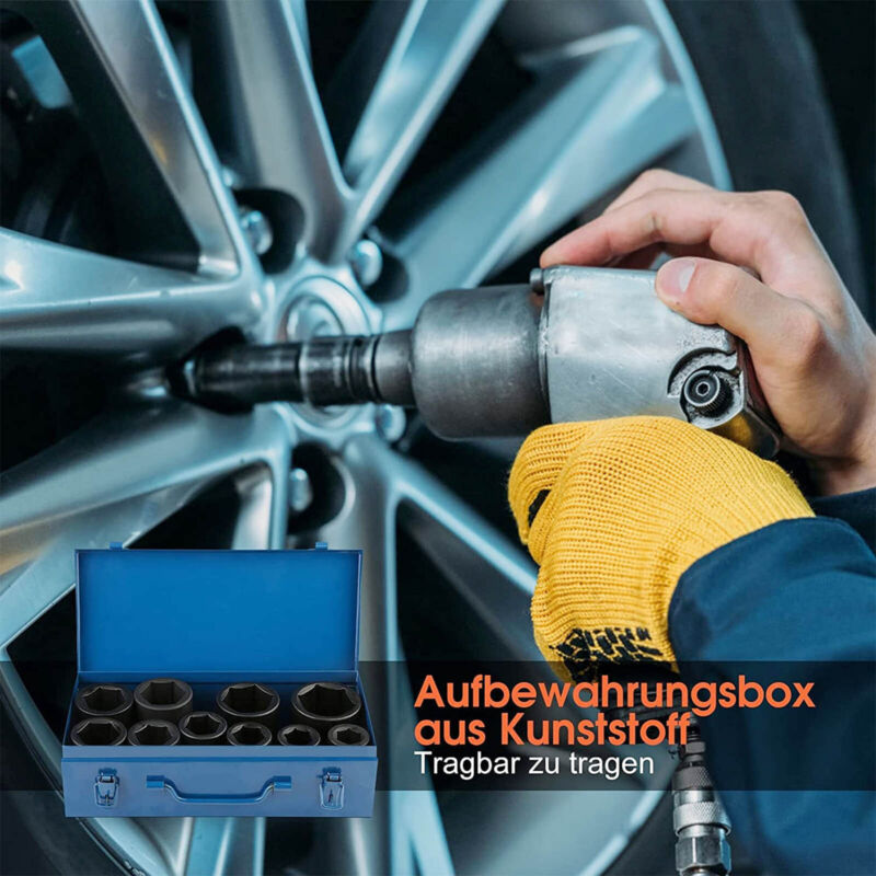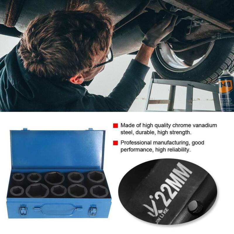 Long Reach Sockets Wheel Wrench Nut Tool 1" Deep Impact Sockets Set 22-50mm 10pc