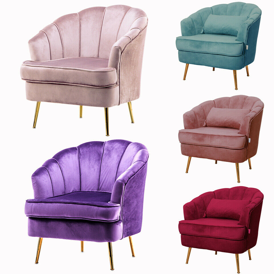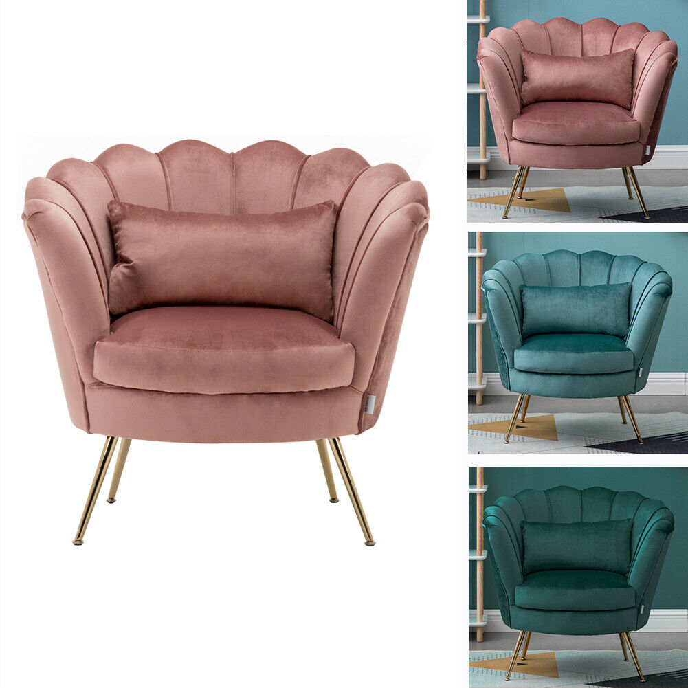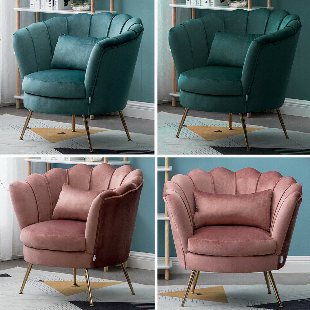Lotus Seat Velvet Fabric Tub Chair Winged Scallop Shell Back Armchair Metal Legs