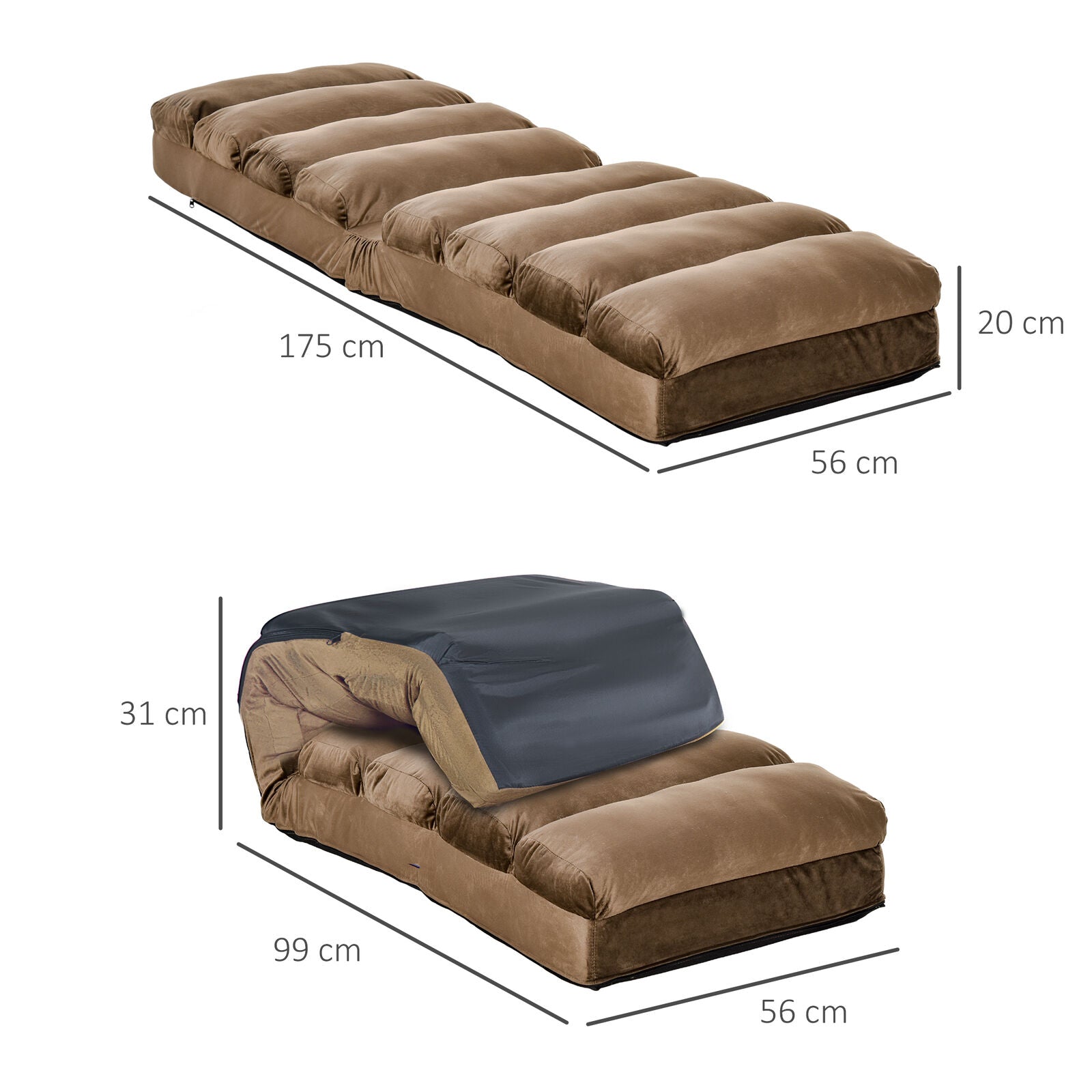 Lounge Sofa Bed Folding Adjustable Floor Lounger SleeperChair w/Pillow, Brown