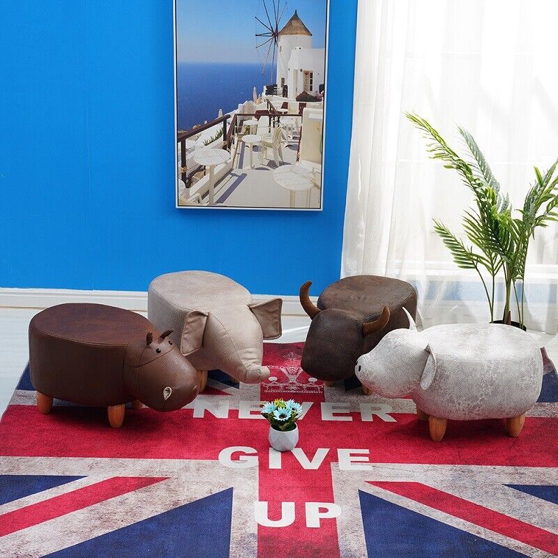 - Lovely PU Animal Footstools Padded Stools Ottomans Wood Legs Kids Toy Gift