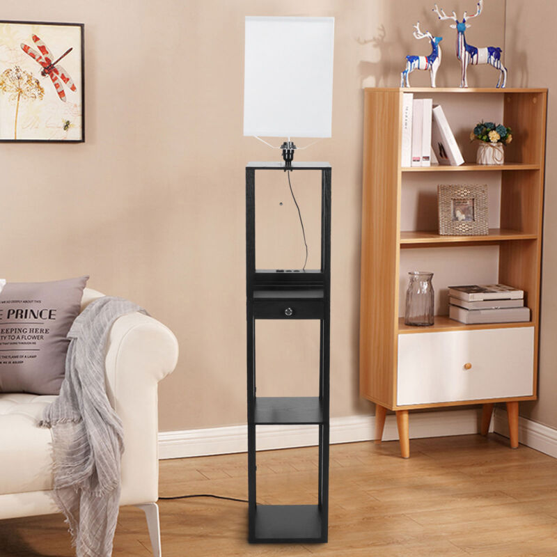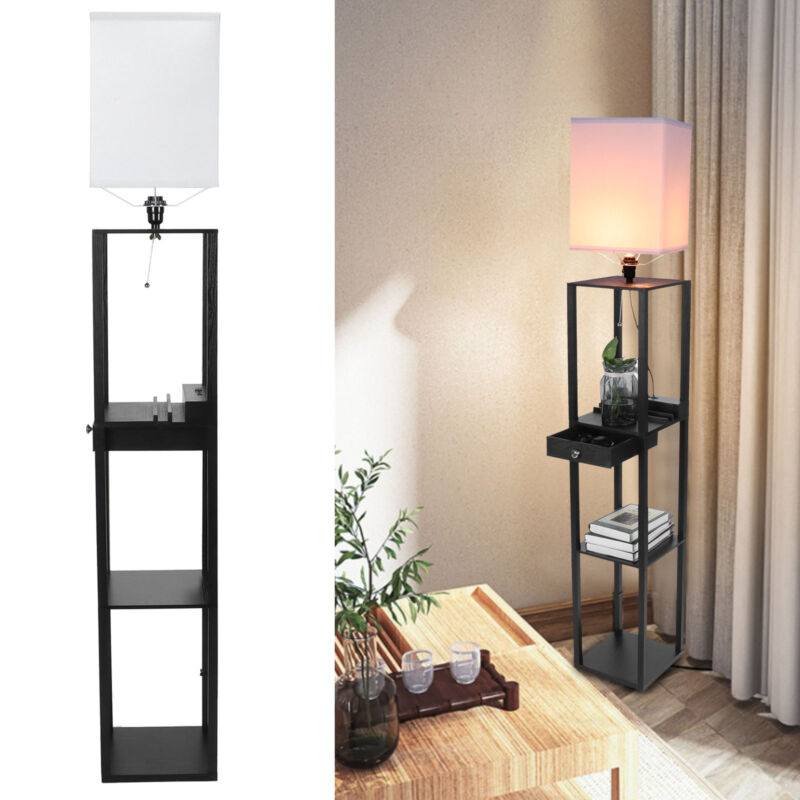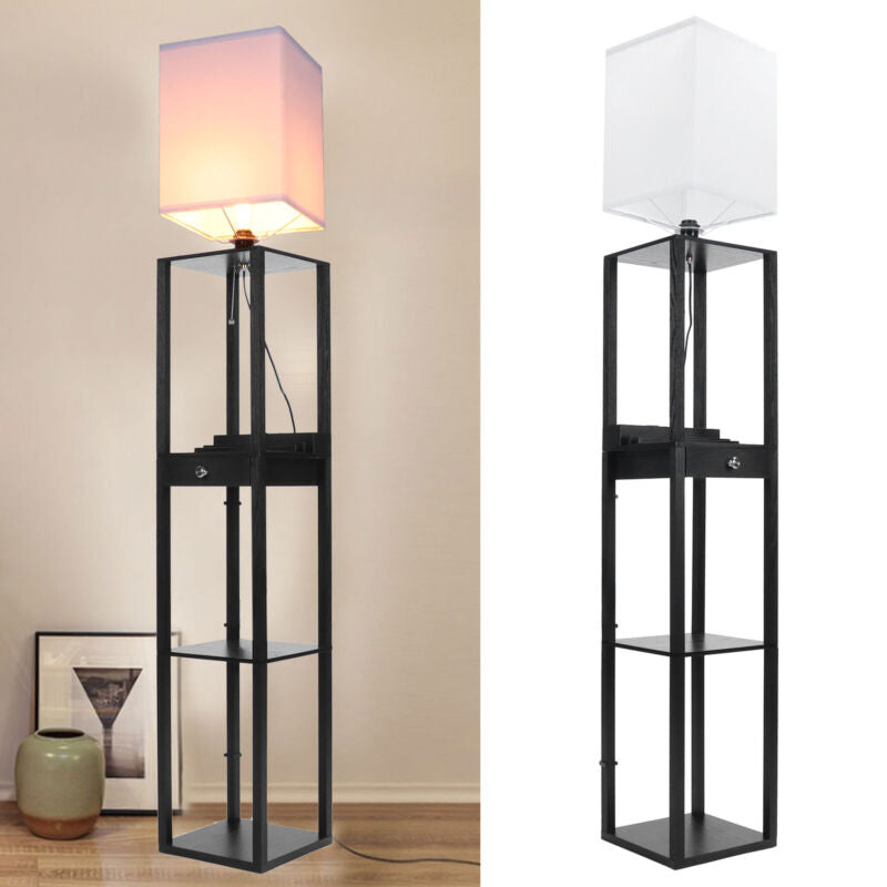 Luxurious Mordern LED 3-Layer Floor Lamp Storage Shelf Reading Light Standing UK