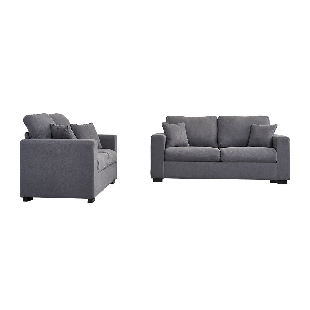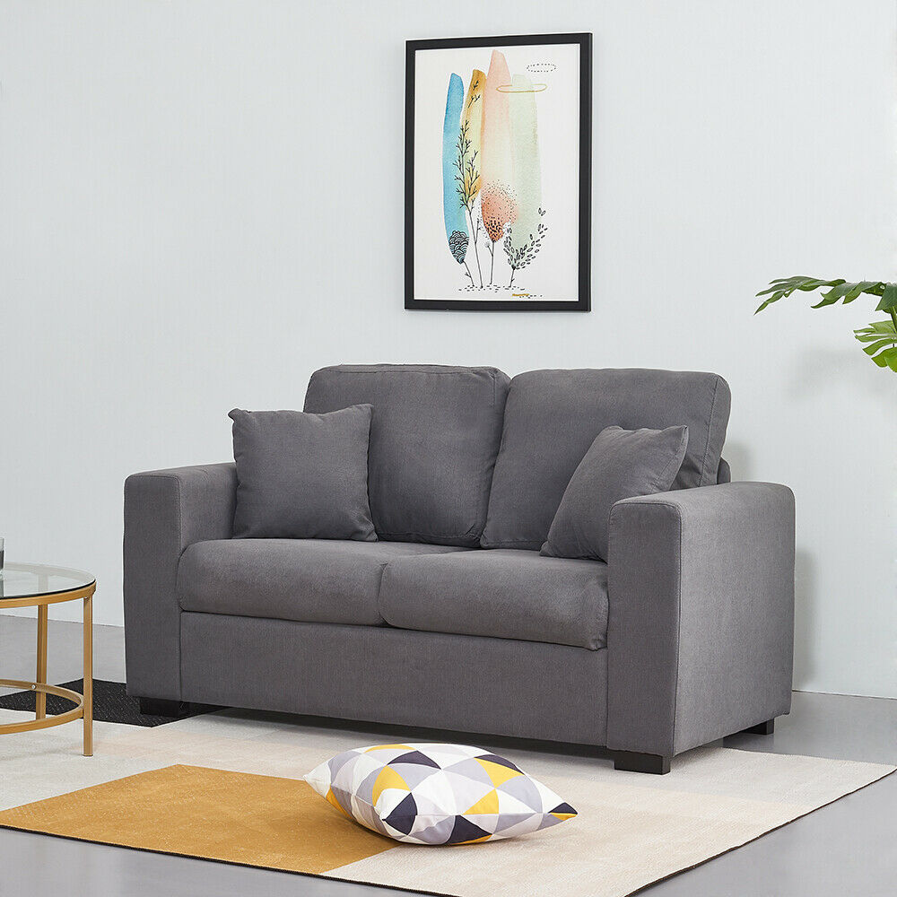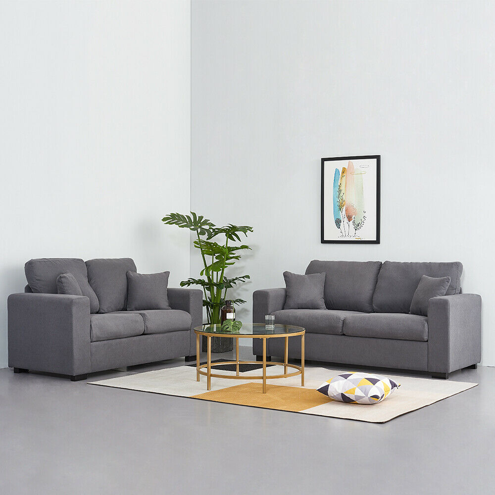 Luxury 2, 3 Seater Linen Fabric Sofa Lounger Couch Settee Armchair with 2 Pillow