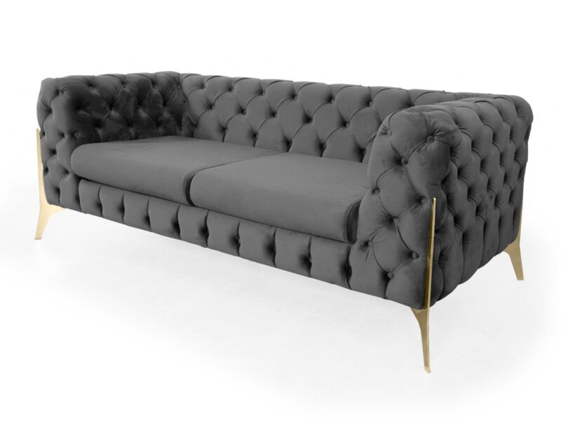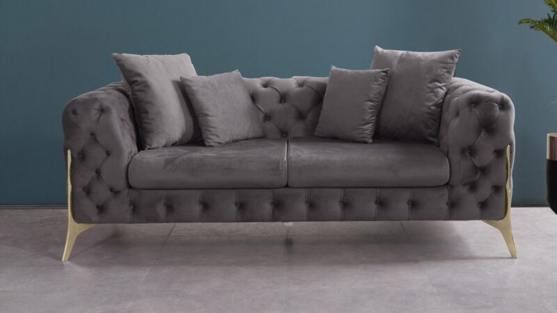 Luxury 2 Seater Chesterfield Sofa Couch Tufted Suite Grey Velvet Upholstered