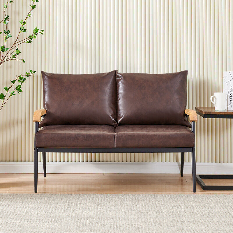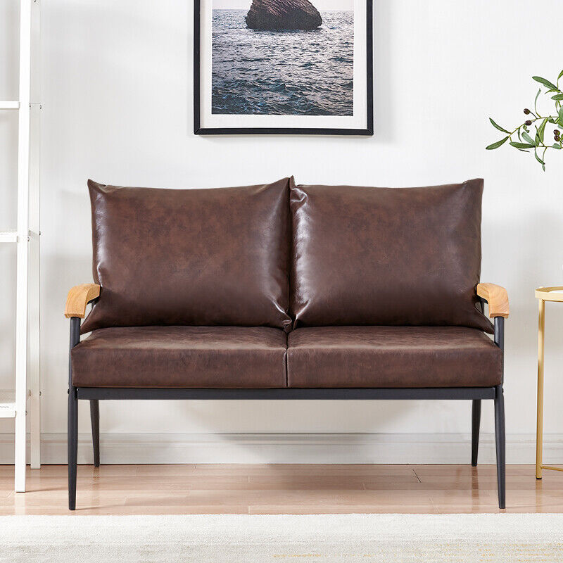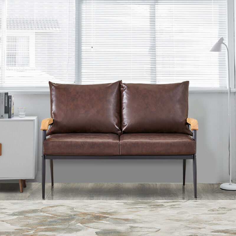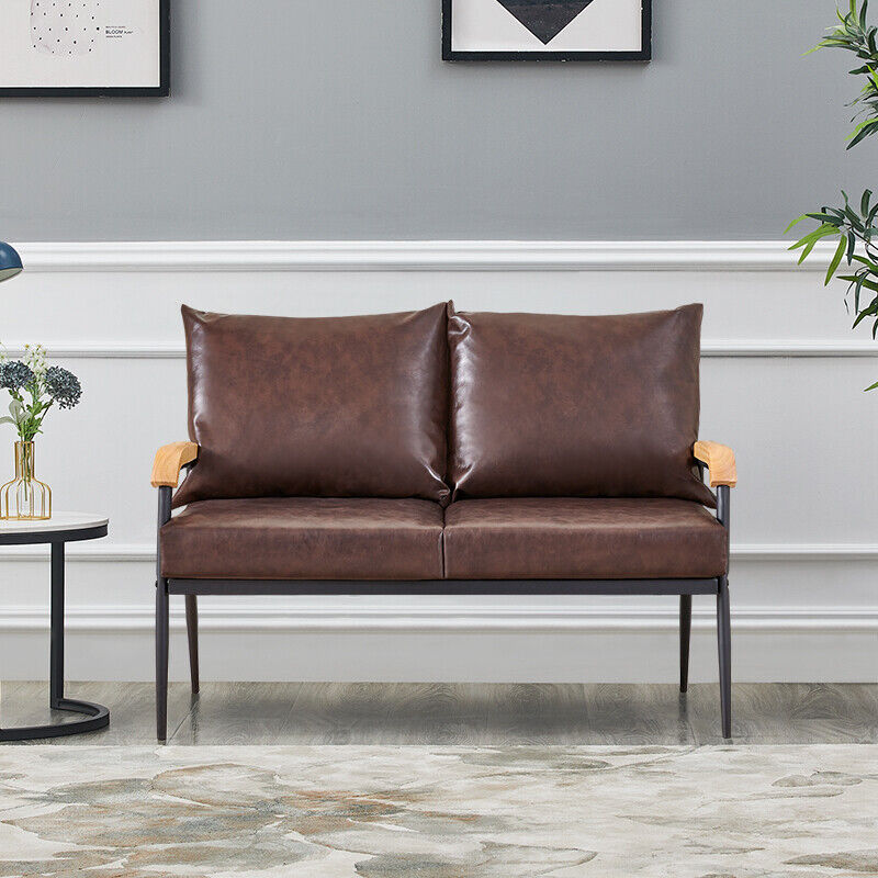 Luxury 2 Seater Deep Brown Faux Leather Sofa Armchair Couch Living Room Offices