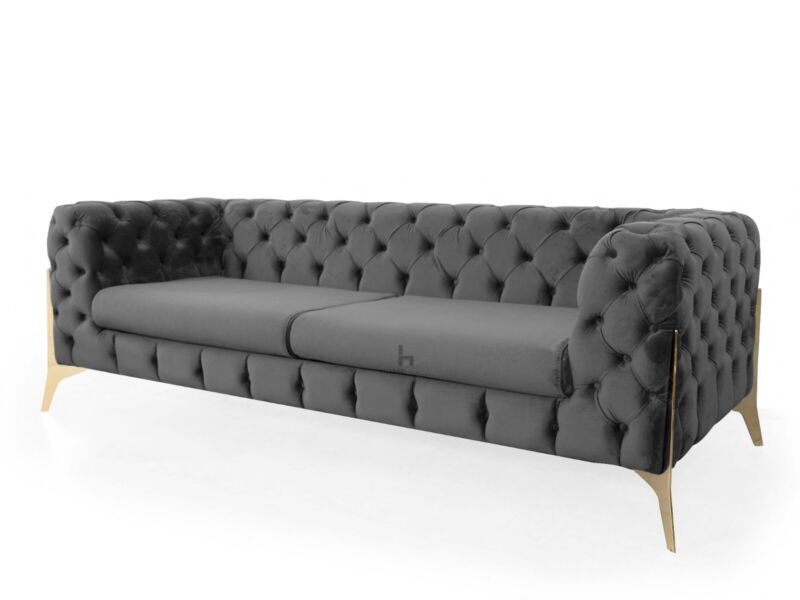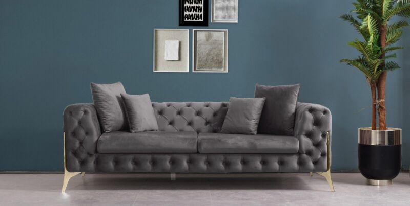 Luxury 3 Seater Chesterfield Sofa Couch Tufted Suite Grey Velvet Upholstered