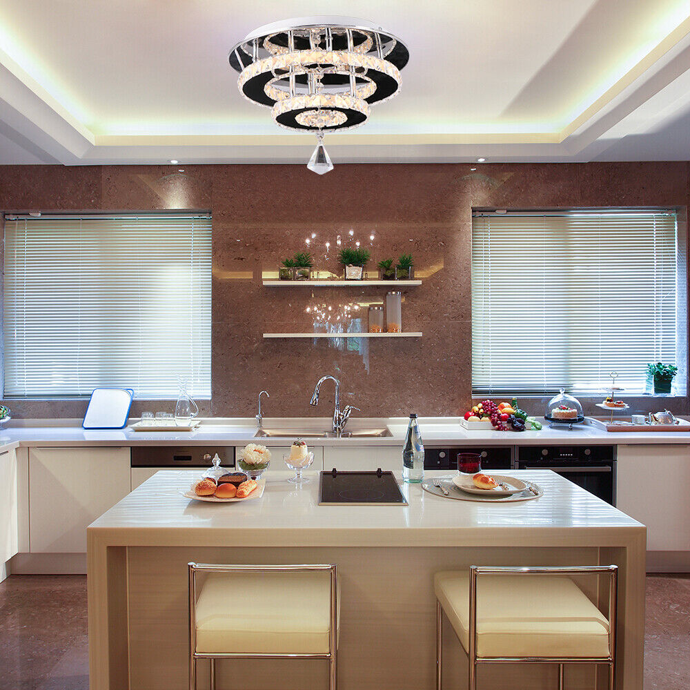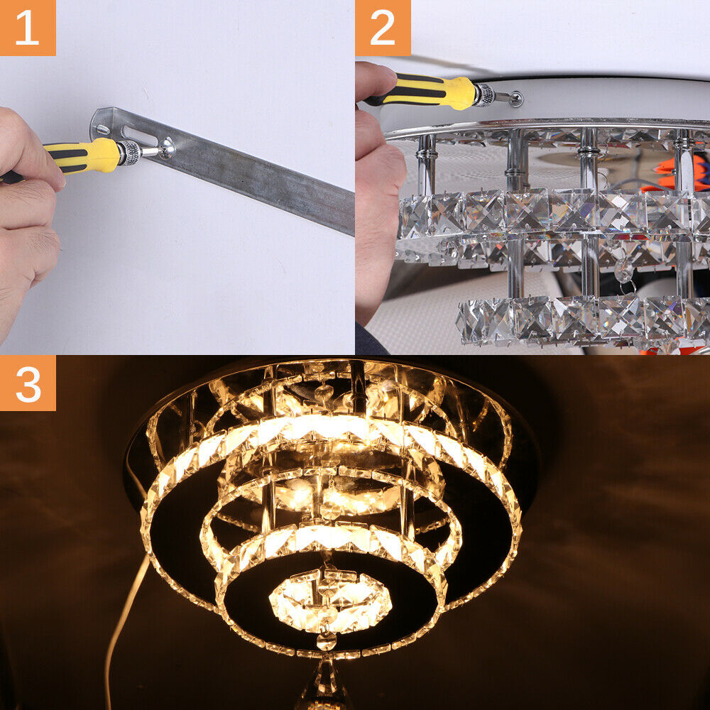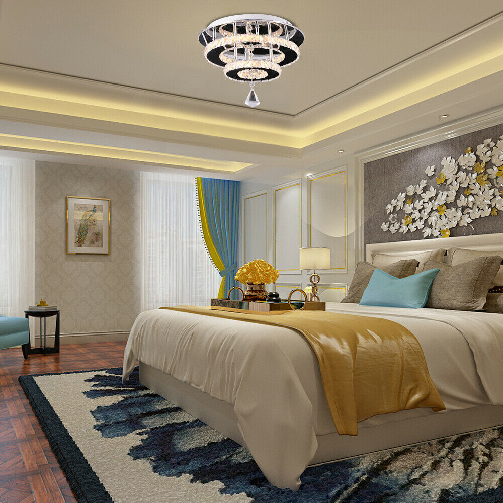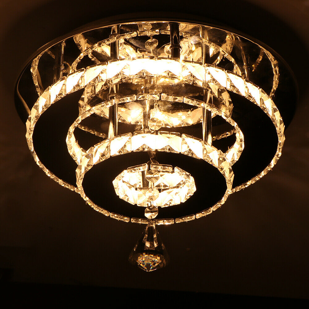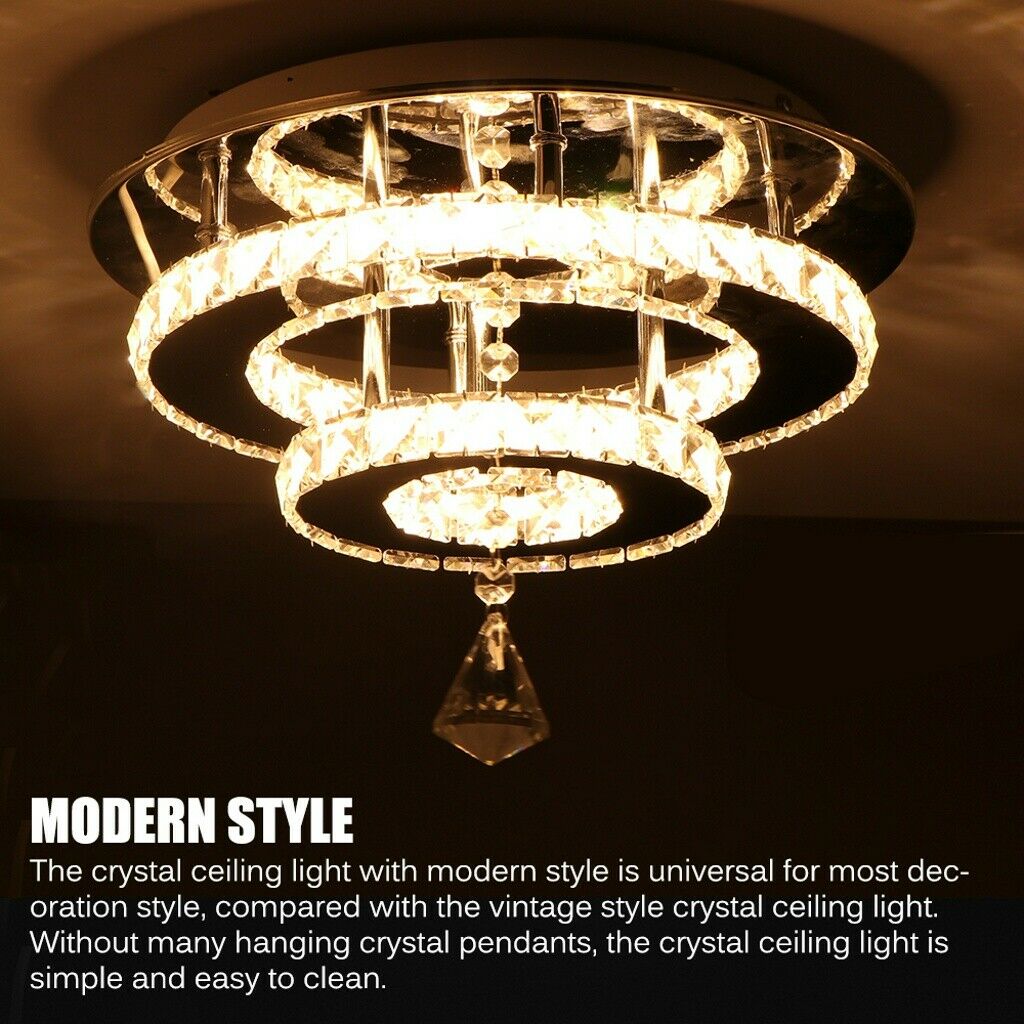 Luxury 36W LED Crystal Ceiling Light Flush Mount Crystal Chandelier Warm White