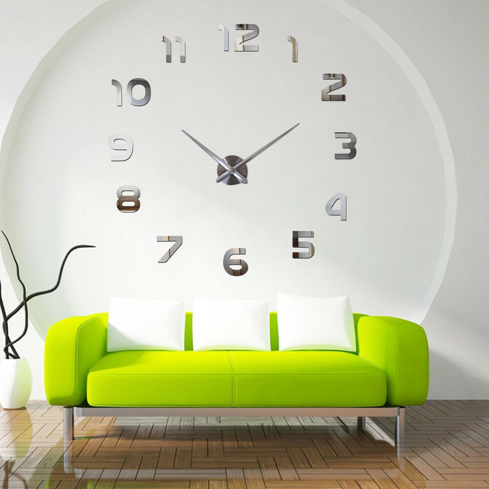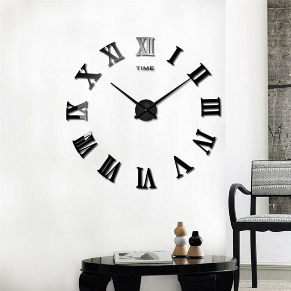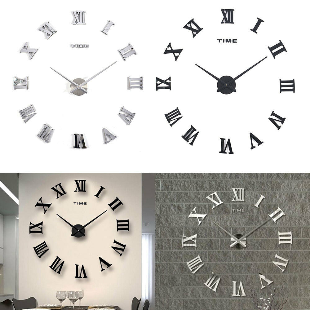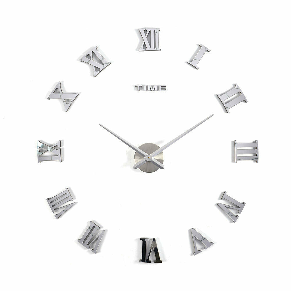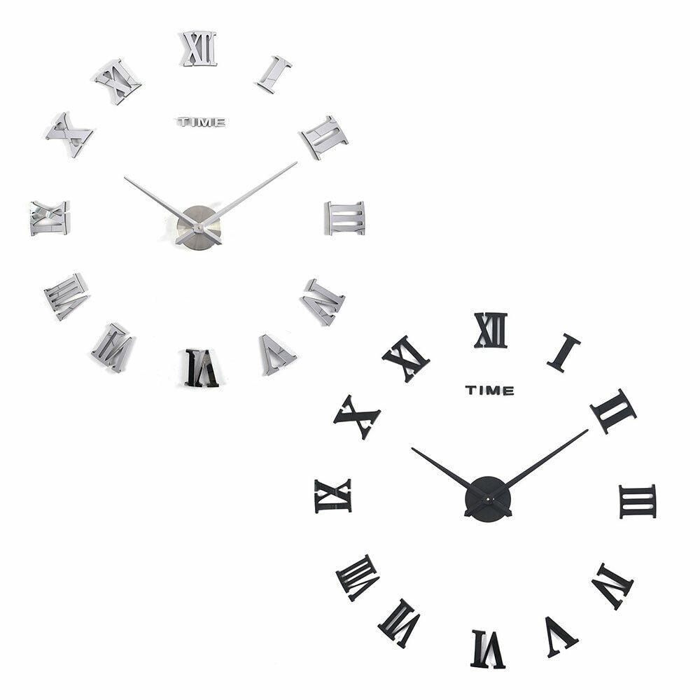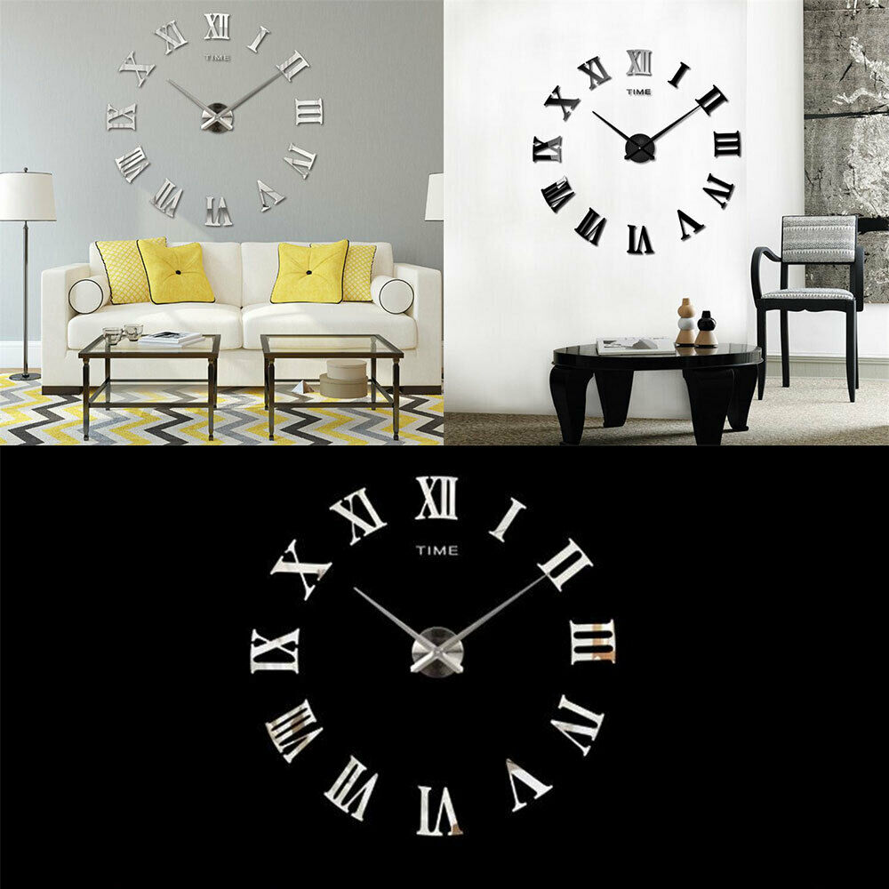 Luxury 3D DIY Wall Clock Roman Numeral Mirror Sticker Home Living Room Art Décor