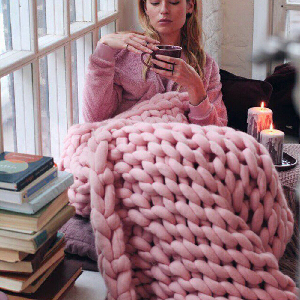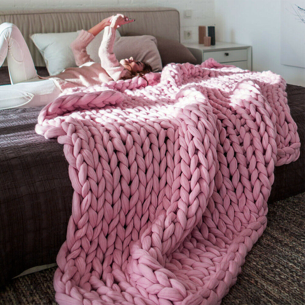 Luxury Chunky Warm Knitted Thick Blanket Hands Bulky Knit Throw Sofa Bed Cover
