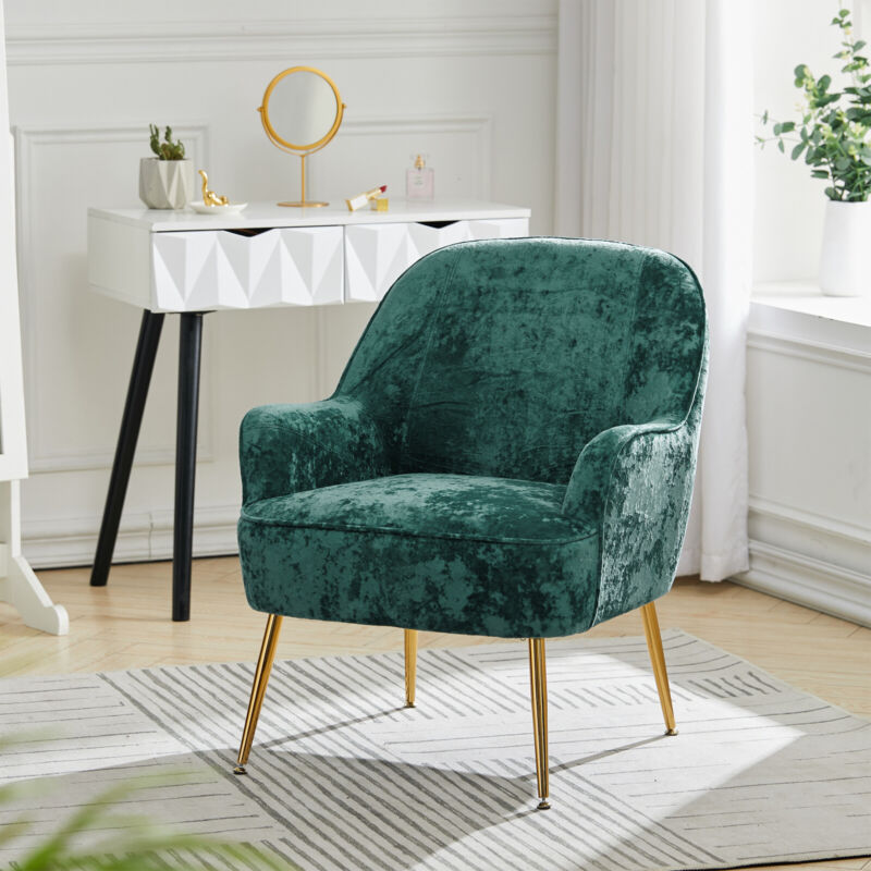 Luxury Crushed Velvet Armchair Wingback Padded Tub Chair Cafe Sofa W/ Metal Legs