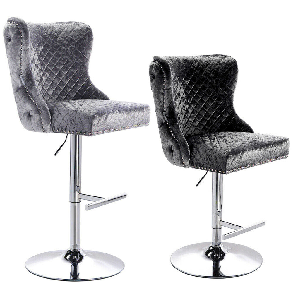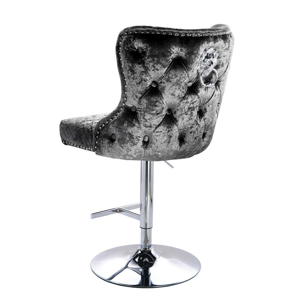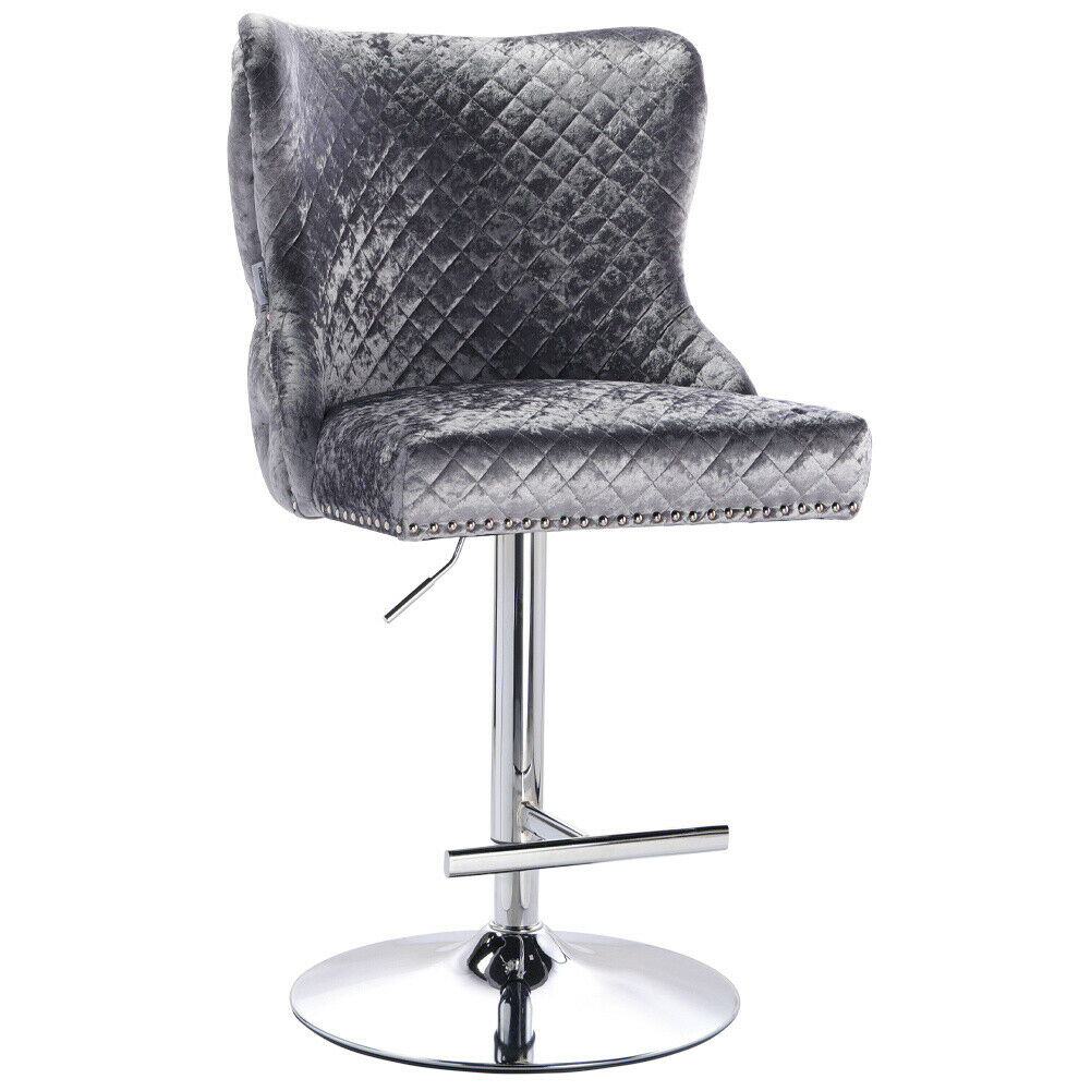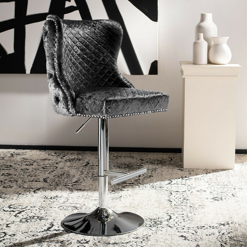 Luxury Crushed Velvet Fabric Bar Stool Knocker Button Back Gas Lift Barstool