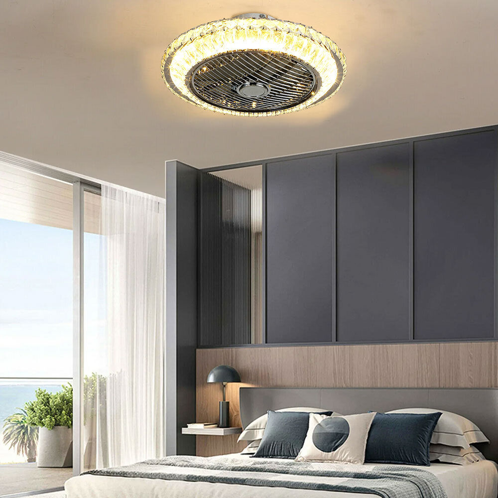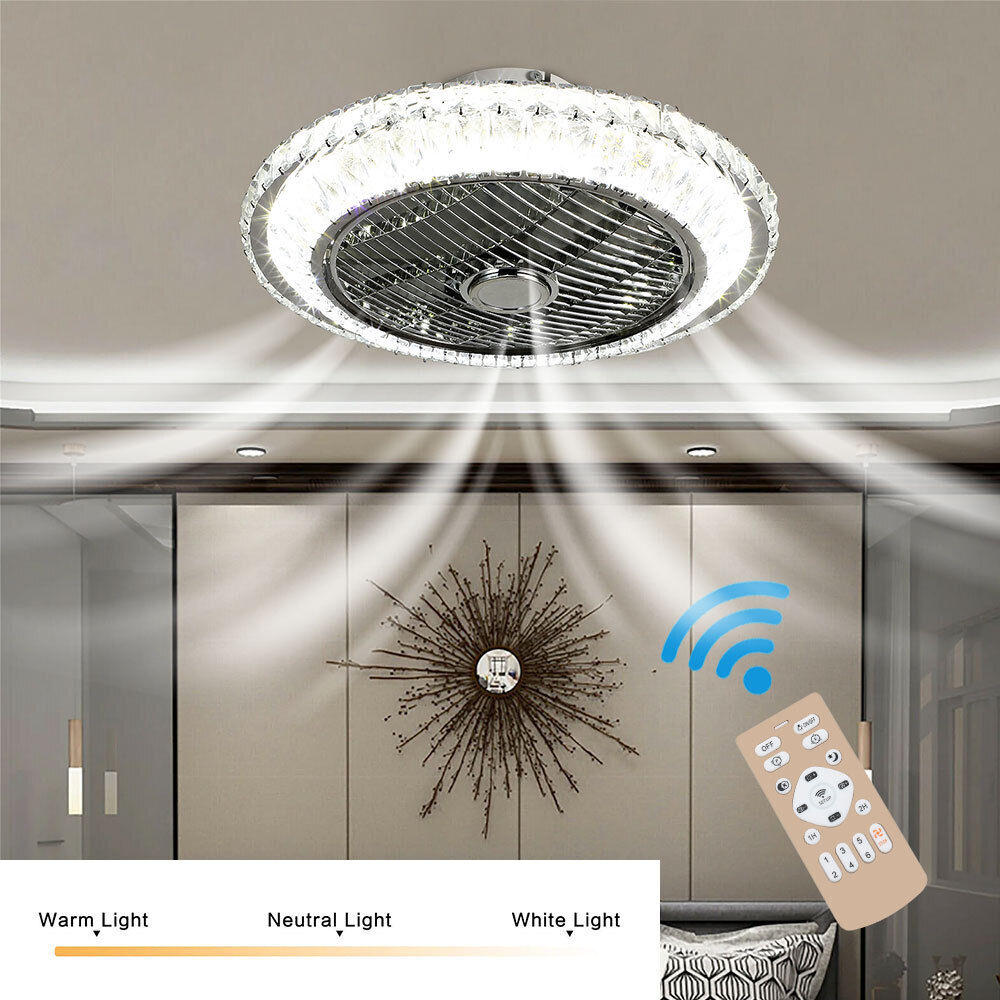 Luxury Crystal Chandelier Modern Ceiling Fan With Lights Dimmable 3 Color Remote