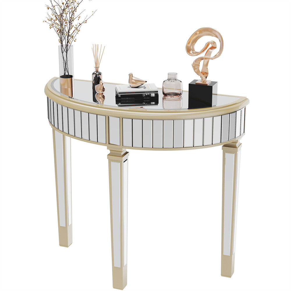Luxury Mirrored Console Table Hall Living Room Table Half Moon Dressing Table