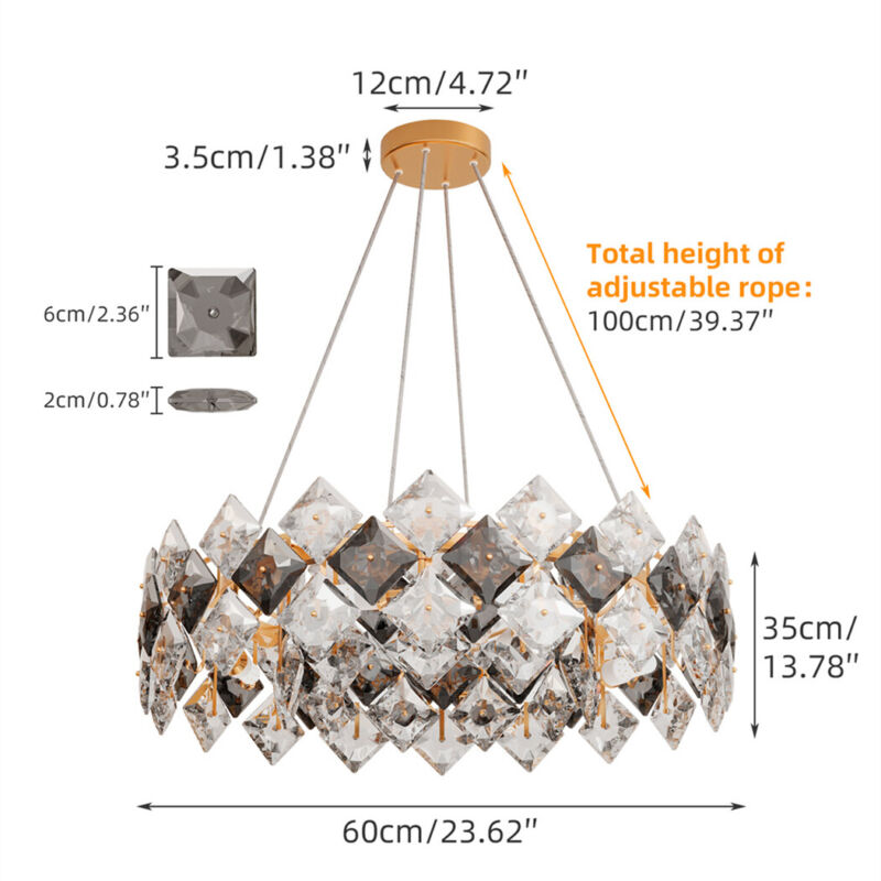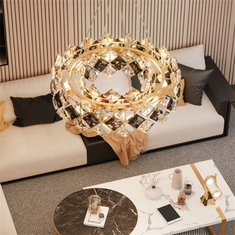Luxury Modern Crystal Chandeliers Smoky Grey & Clear Golden Metal Pendant Lights