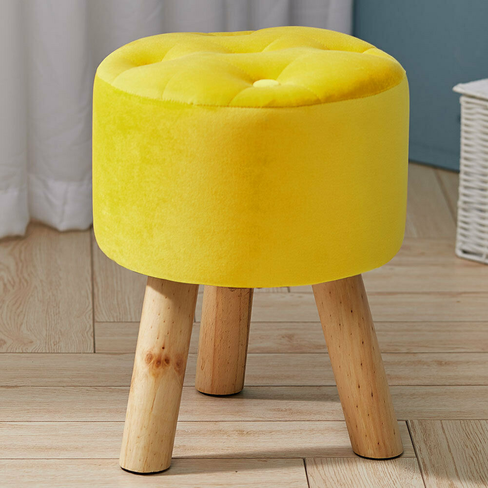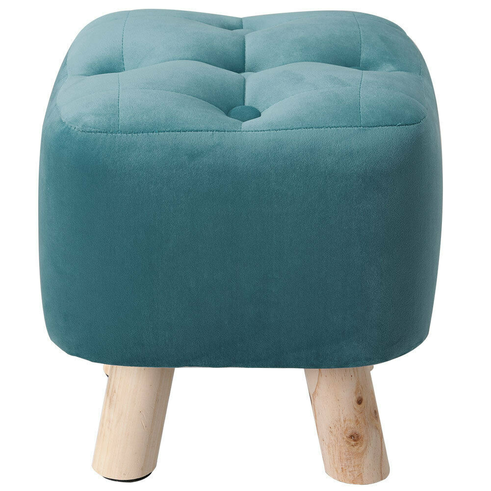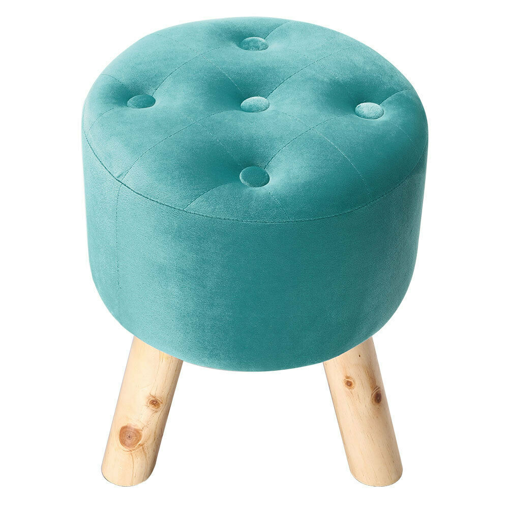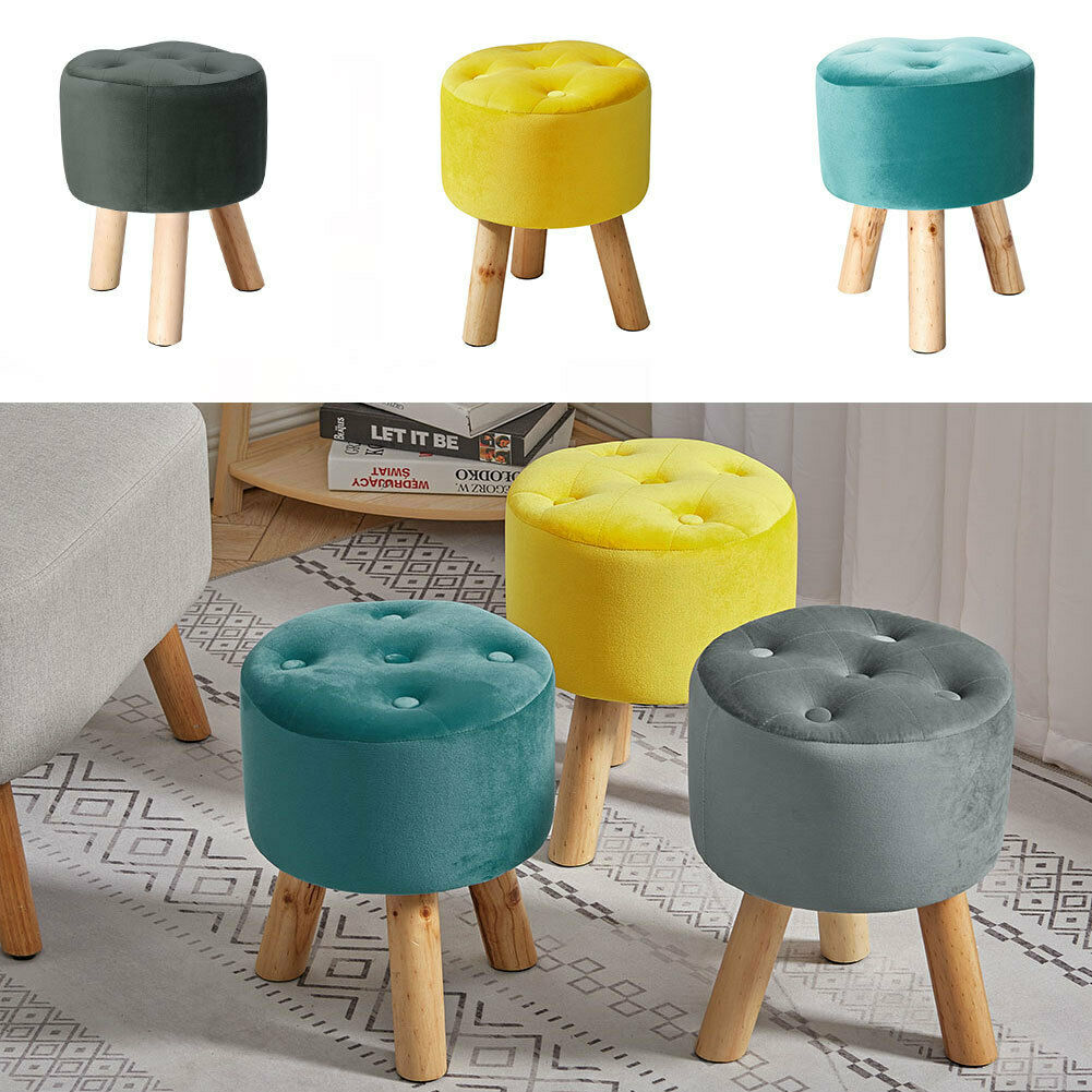 - Luxury Padded Wooden Footstool Ottoman Square/Round Pouffe Stool Wood 4 Legs UK