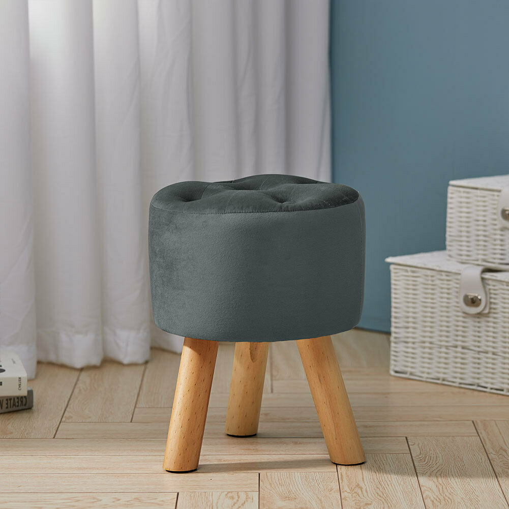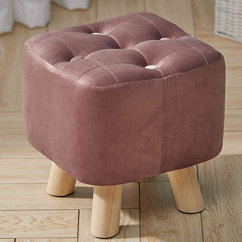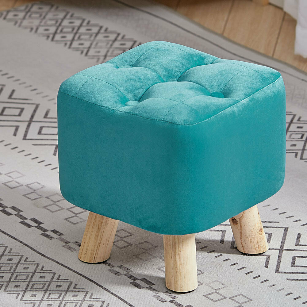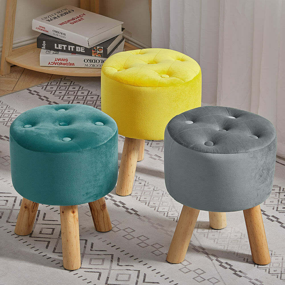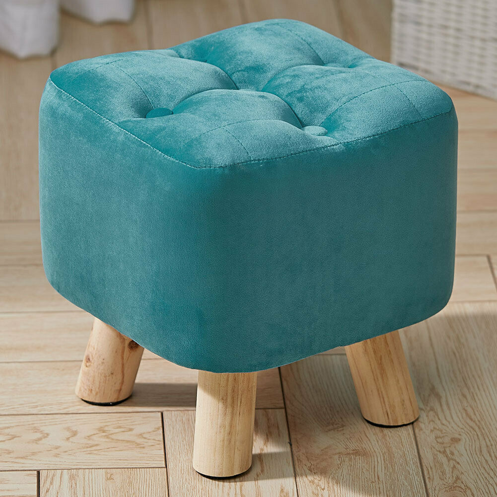 - Luxury Padded Wooden Footstool Ottoman Square/Round Pouffe Stool Wood 4 Legs UK