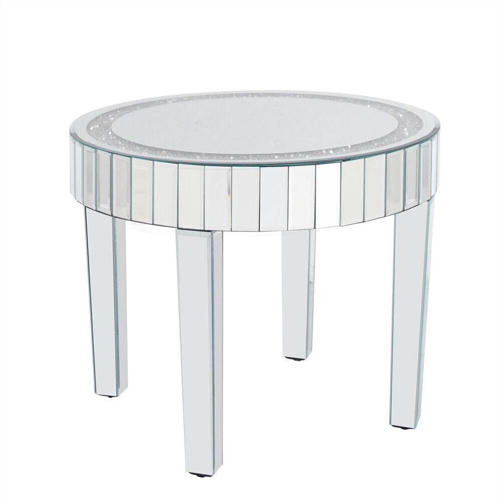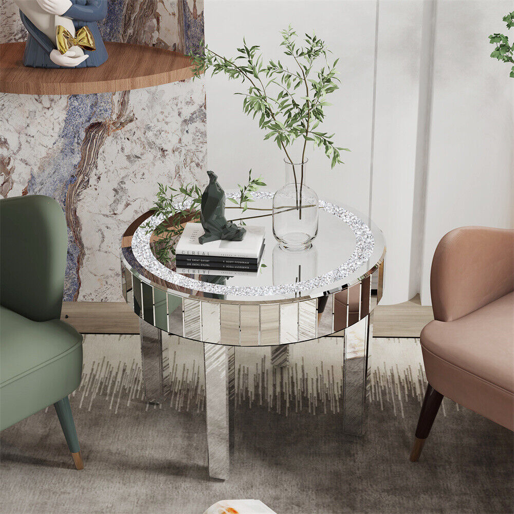 Luxury Silver Crushed Crystal Round Coffee Table Sparkle Diamante Accent Table
