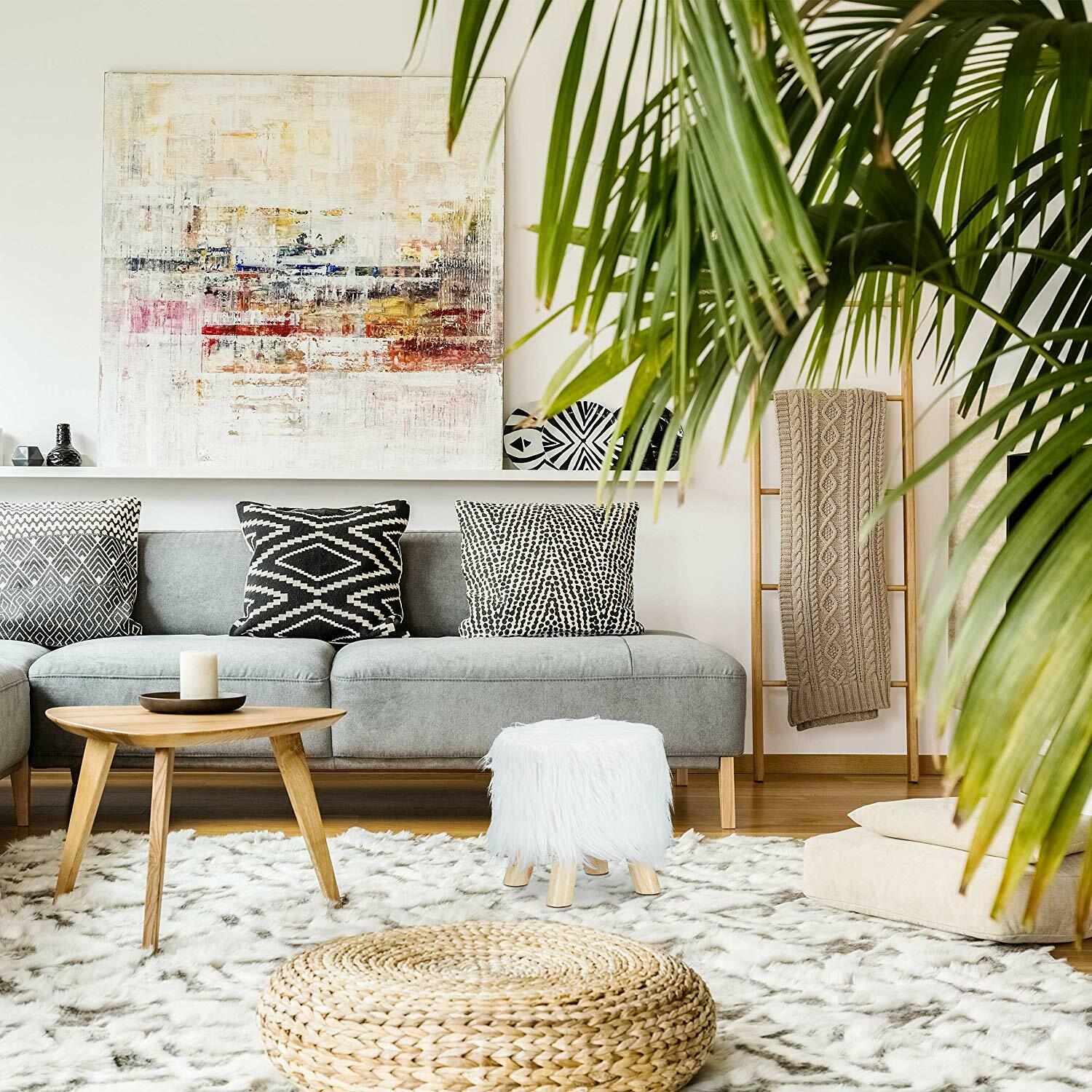 LUXURY WOODEN FOOTSTOOL OTTOMAN POUFFE STOOL FOOT REST PADDED SEAT BEDROOM ROUND